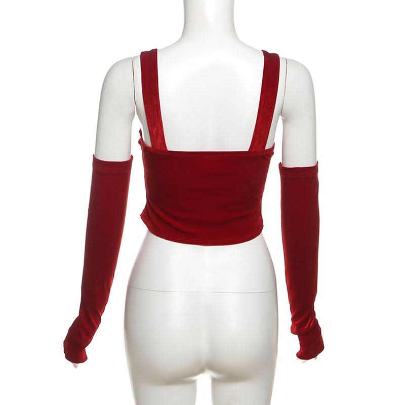 Gloves bowknot lace velvet patchwork cami top