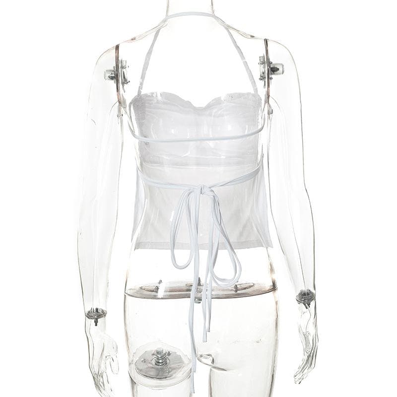 Halter cowl neck backless self tie solid top