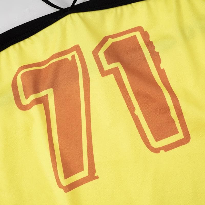 Halter knotted "71" print ruffle tube mini skirt set