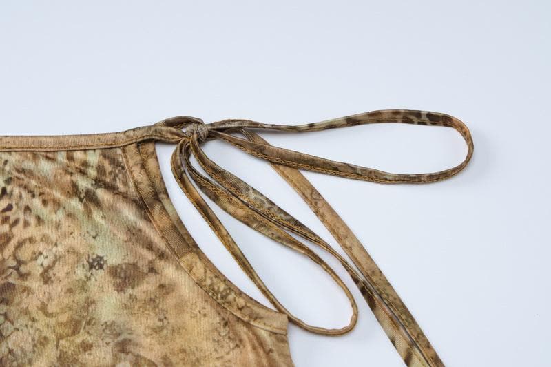 Halter leopard print abstract ruffle knotted maxi skirt set