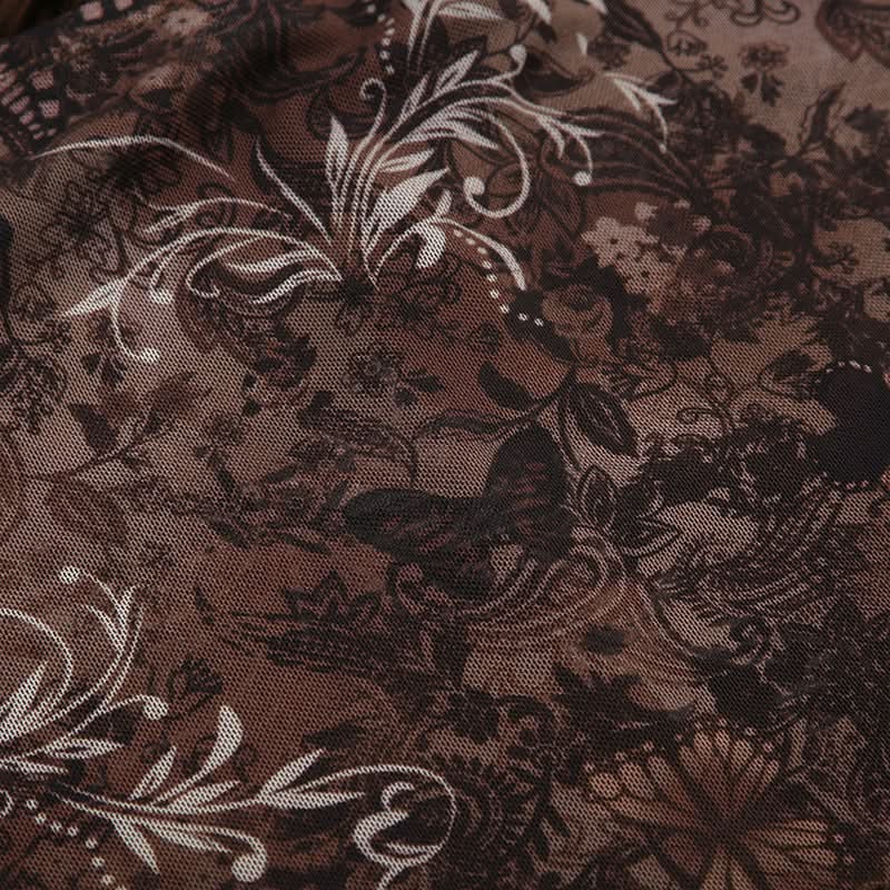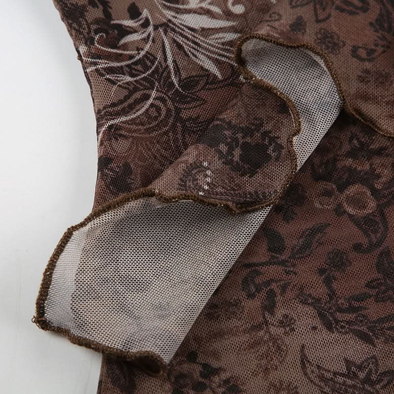 Halter o ring ruched print beaded mesh top