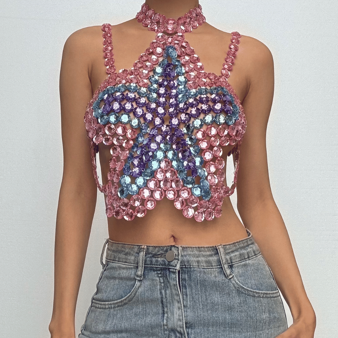 Halter star pattern backless gem chain top