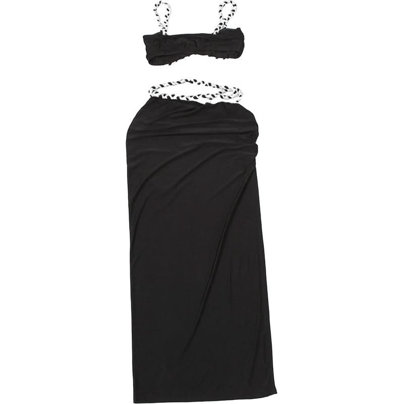 Hollow out ruched high slit cami maxi skirt set