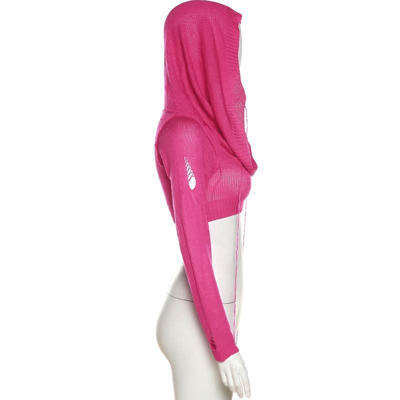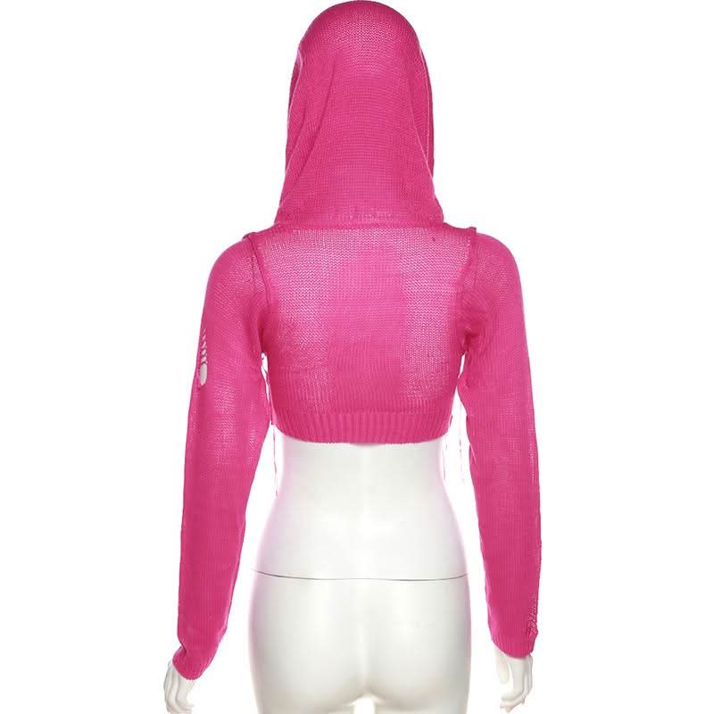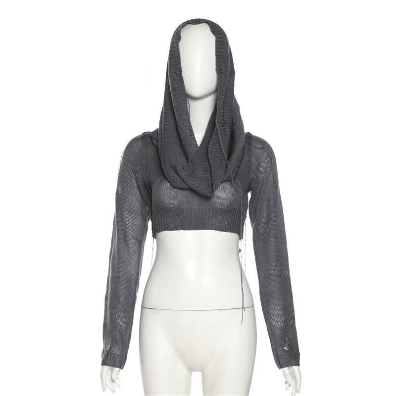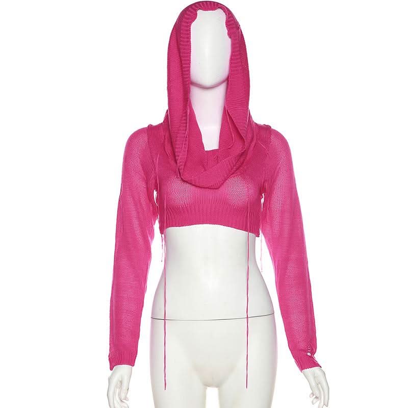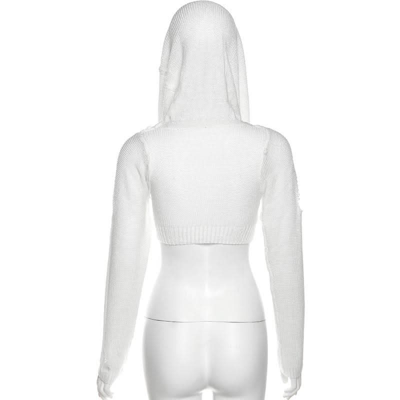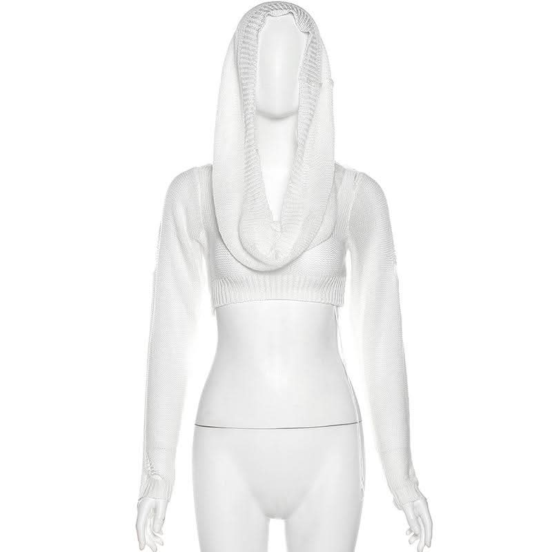 Hoodie long sleeve knitted crop top