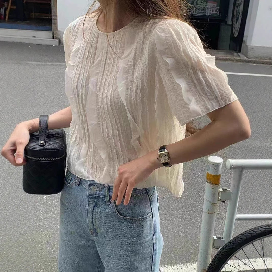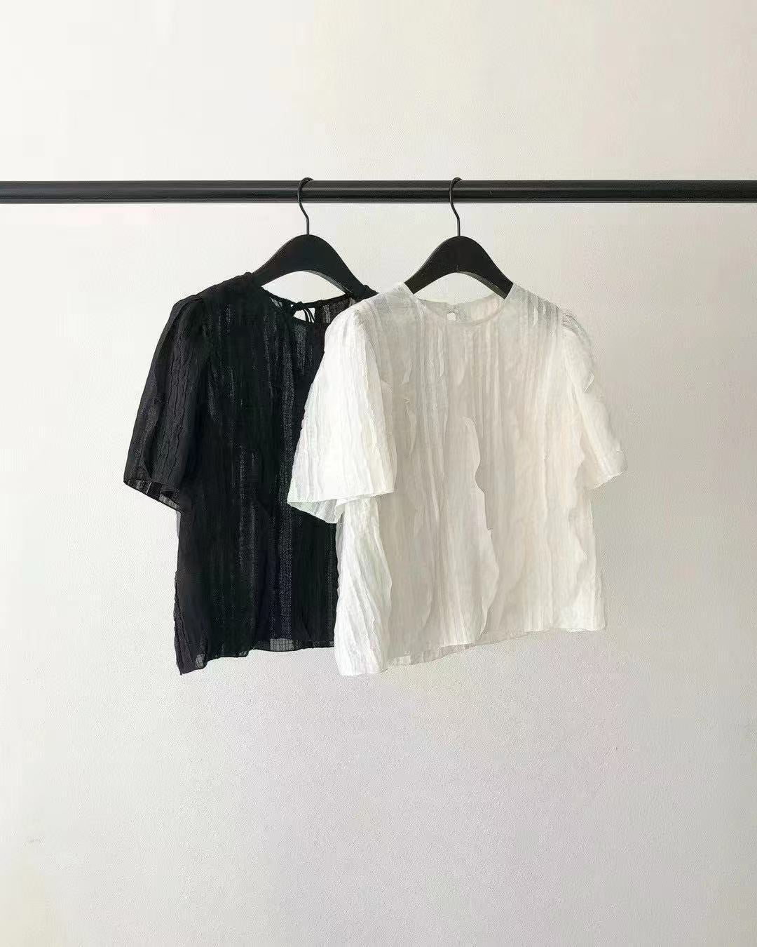 — Spandex — Pullover — Short Sleeve — Loose Fit — Polo Collar — Princess Sleeves — White, Black — One Size — Private Wardrobe – Socialite Style — Shirt