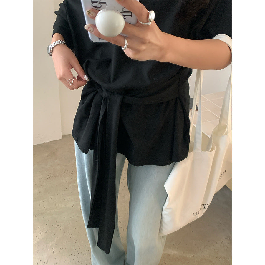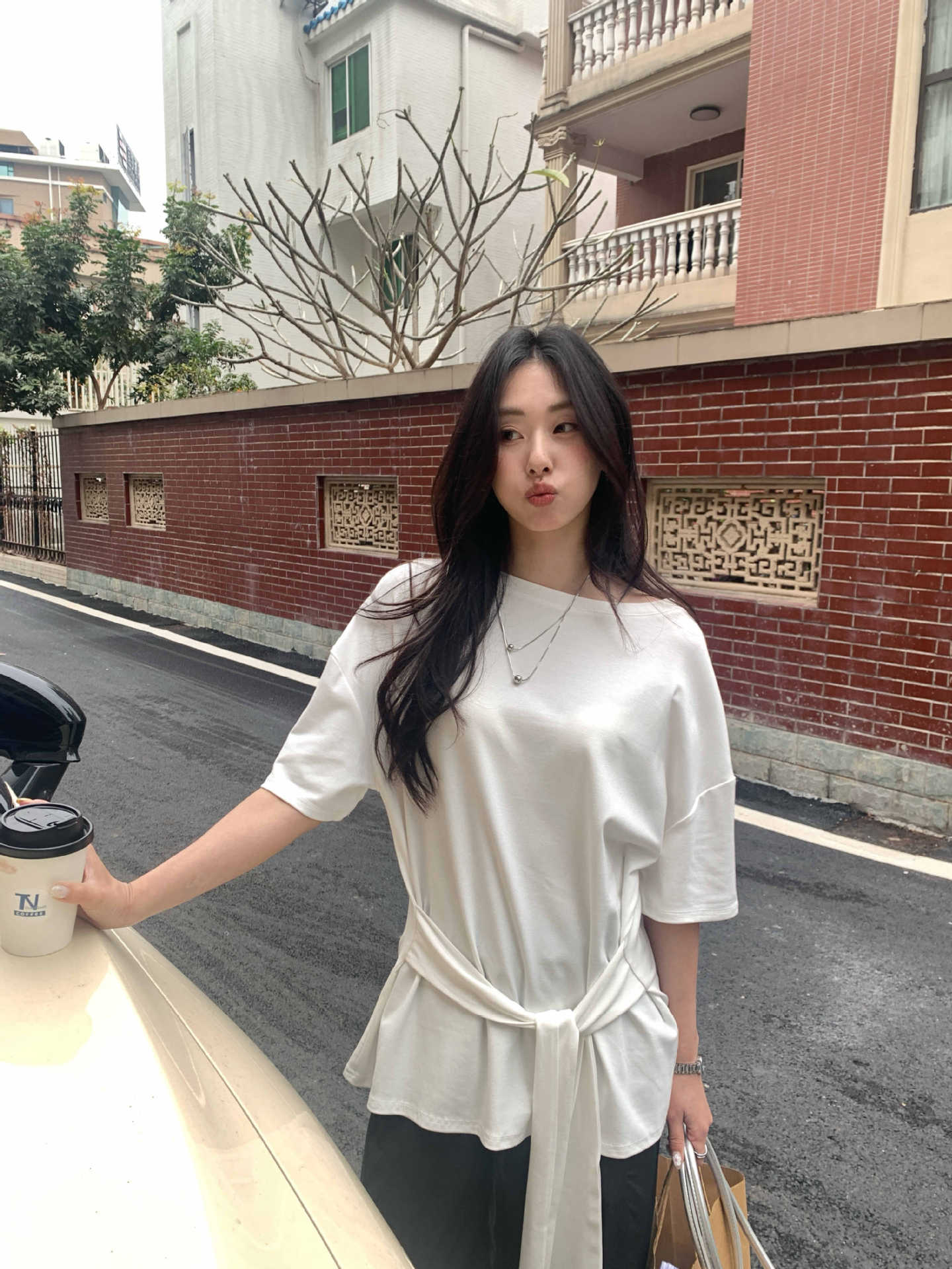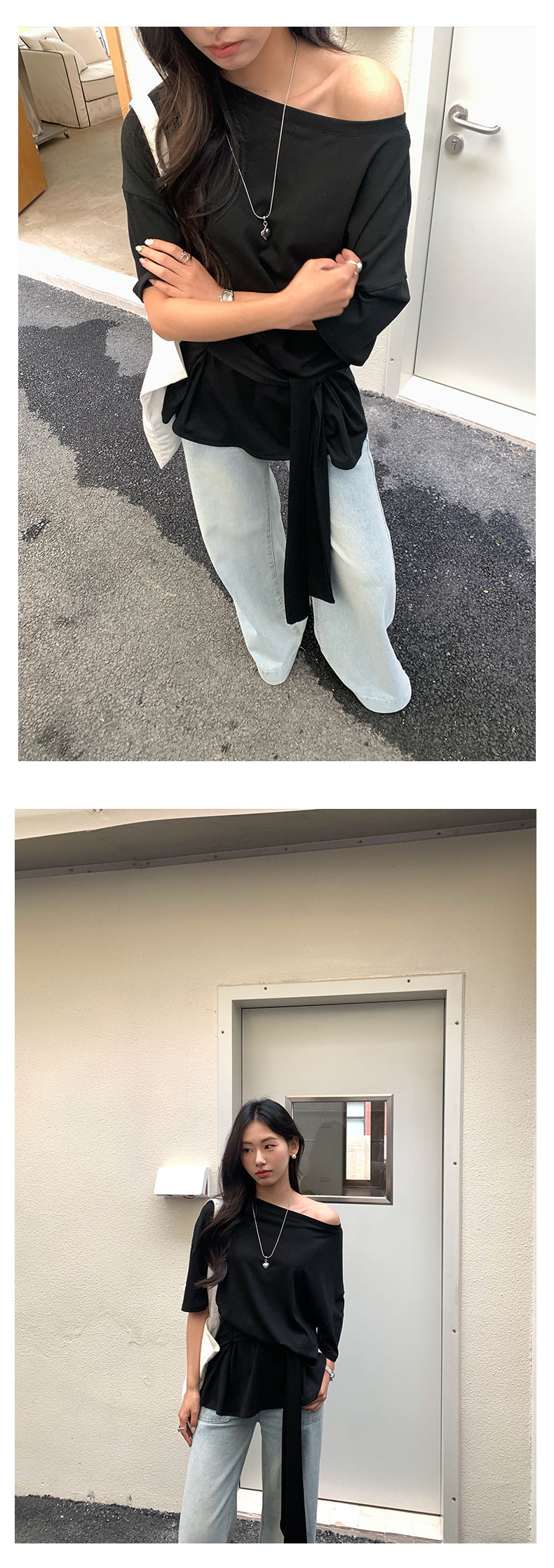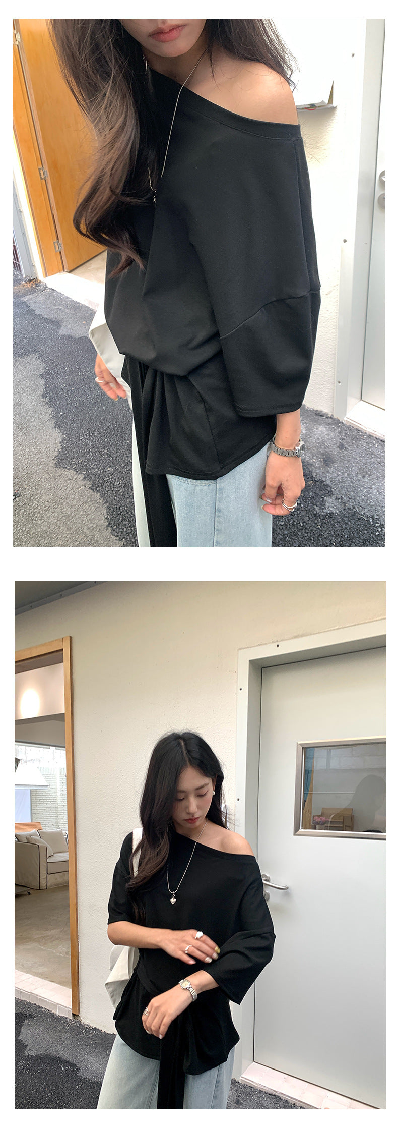 Note: Cropped sleeves (19cm) with roomy silhouette