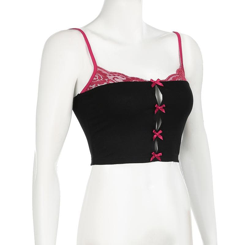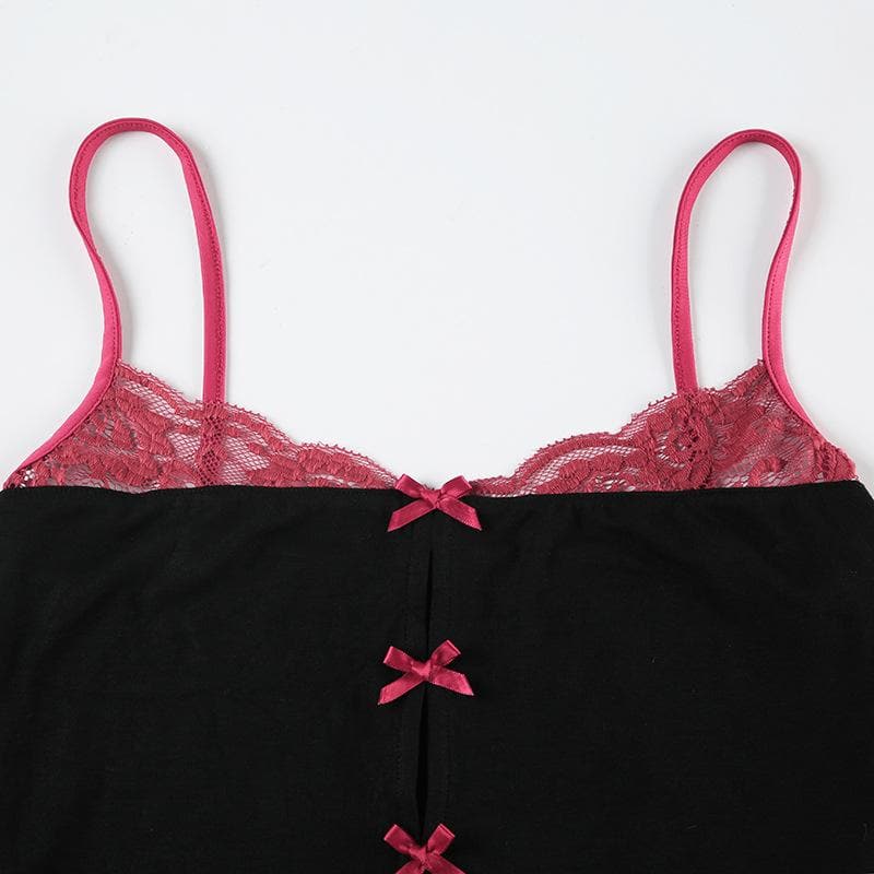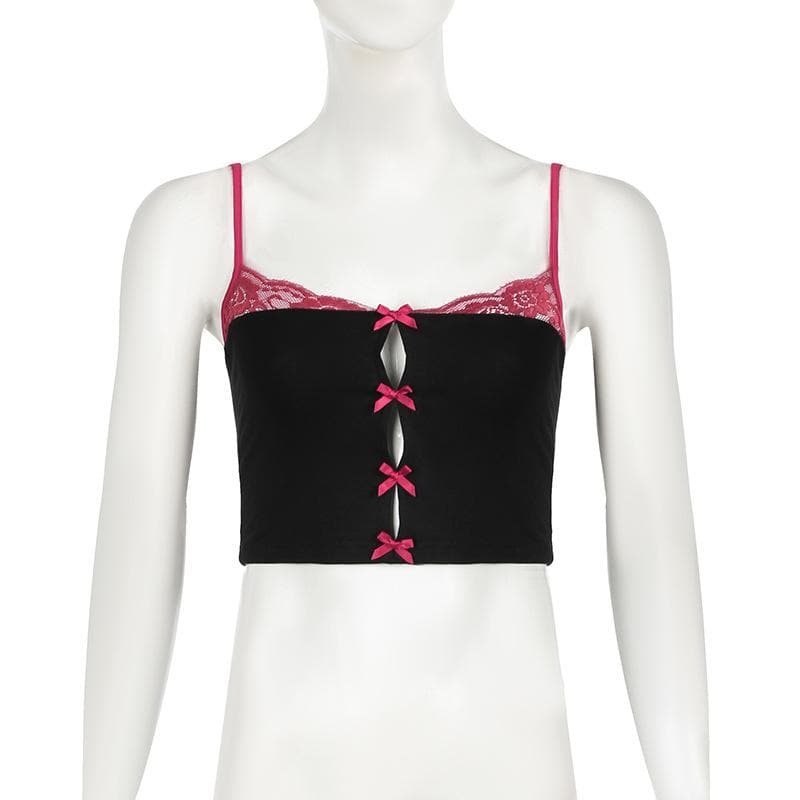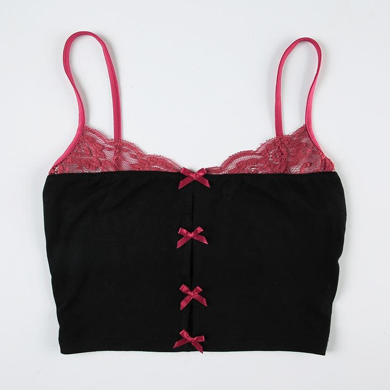 Lace hem bowknot backless cami top