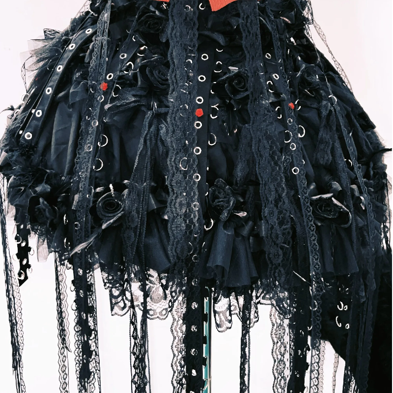 Lace up flower applique ruched lace hem mini skirt set