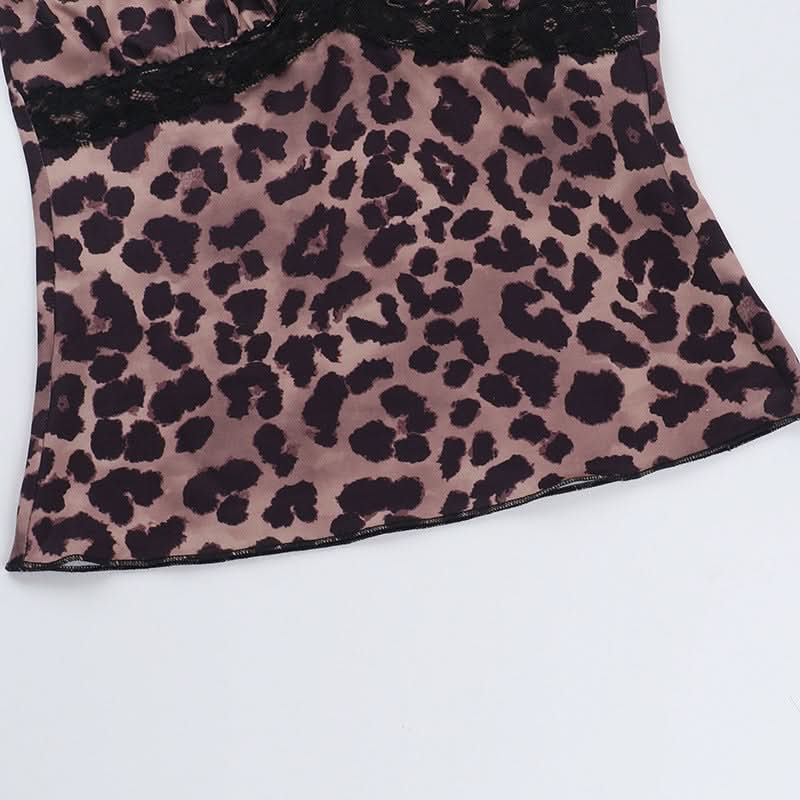 Leopard print lace hem v neck spaghetti strap top