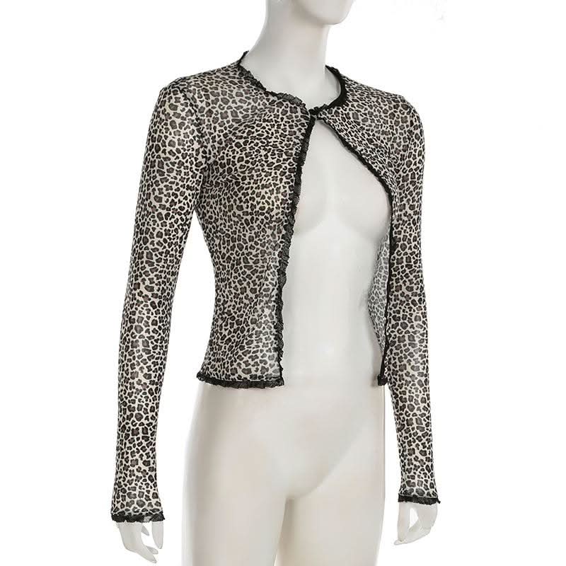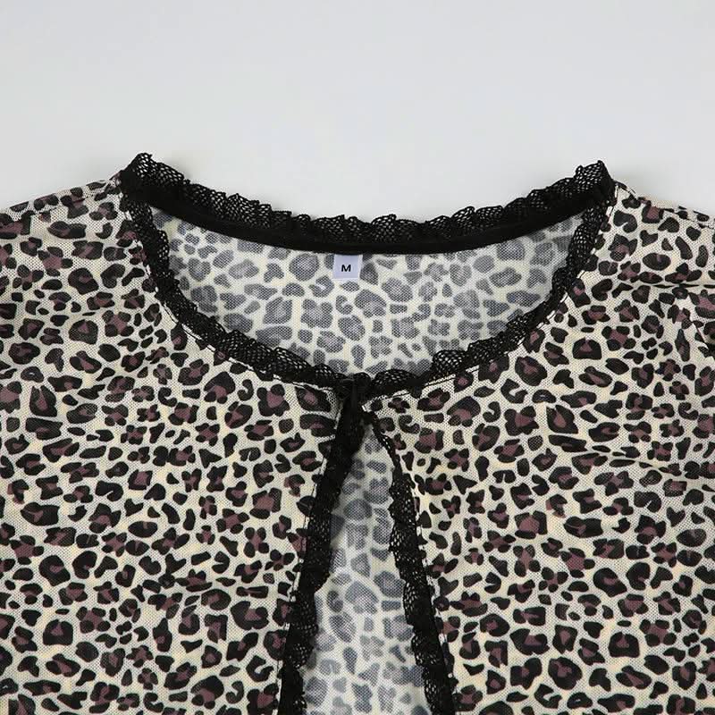 Leopard print long sleeve mesh crop top