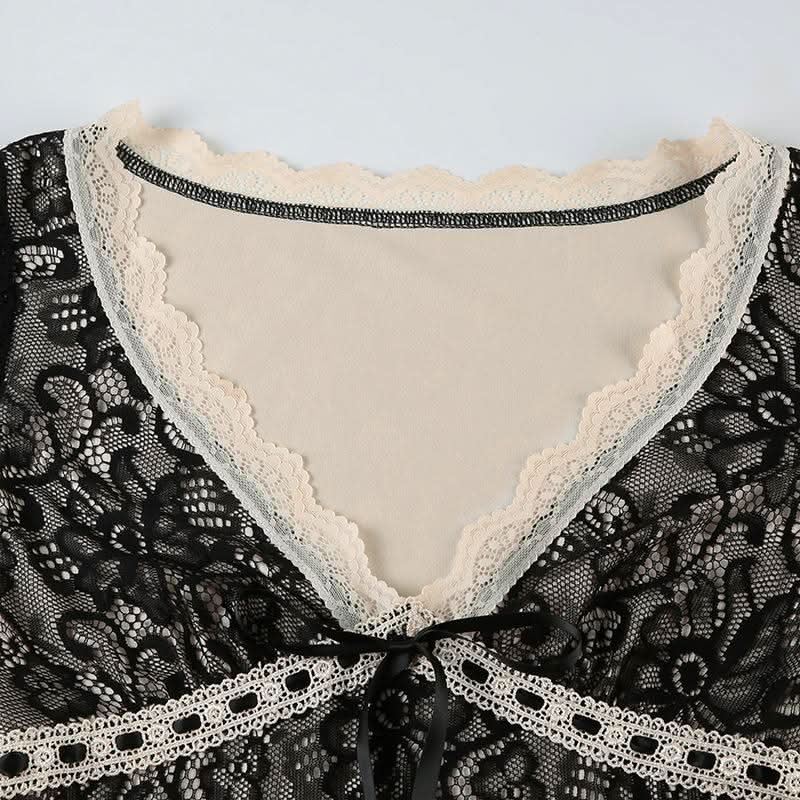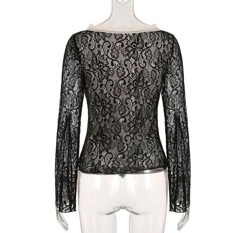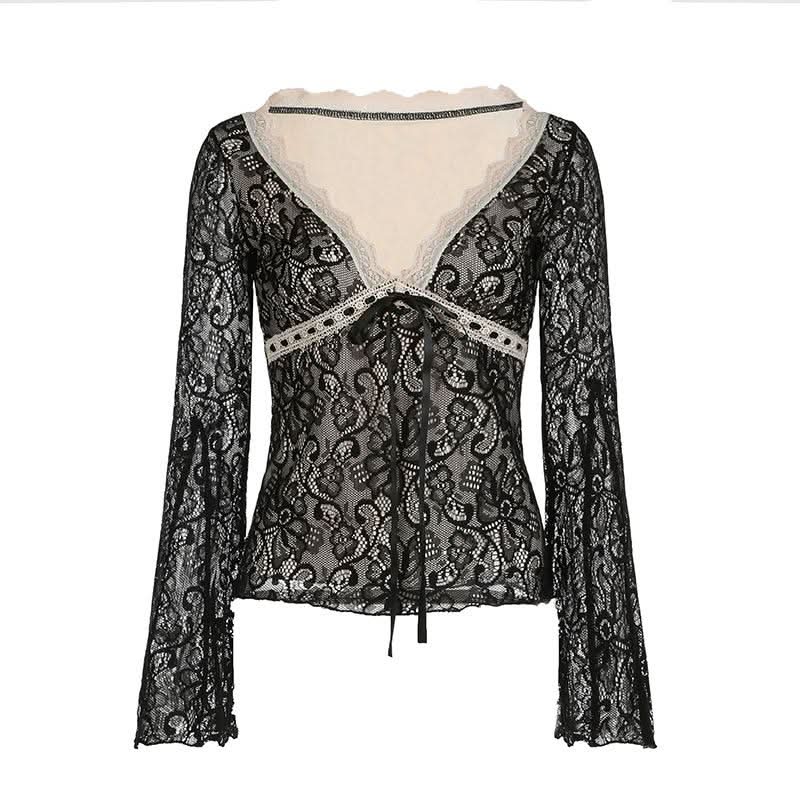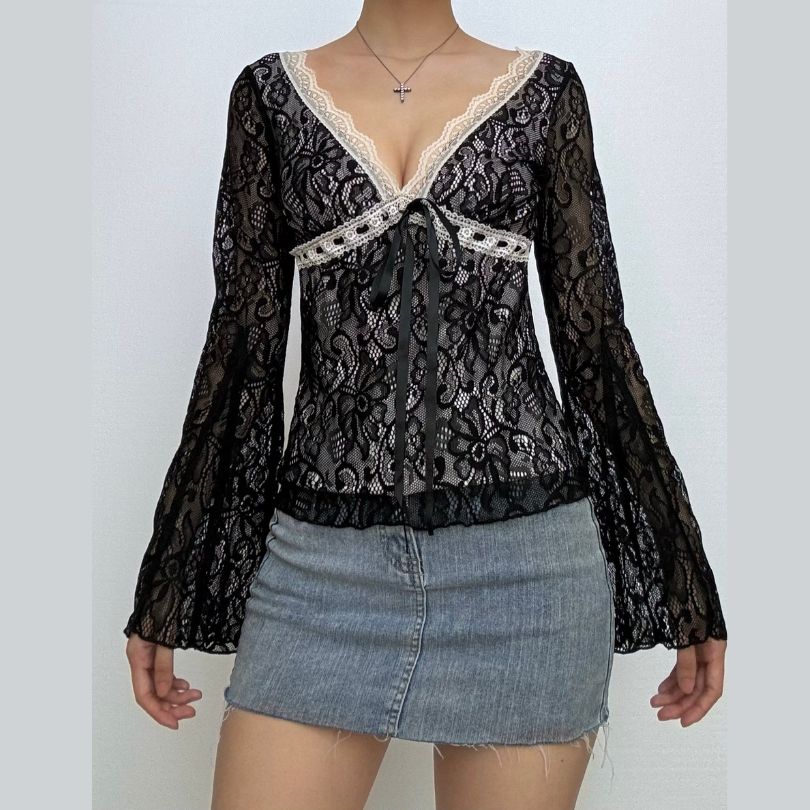 Long flared sleeve lace bowknot top