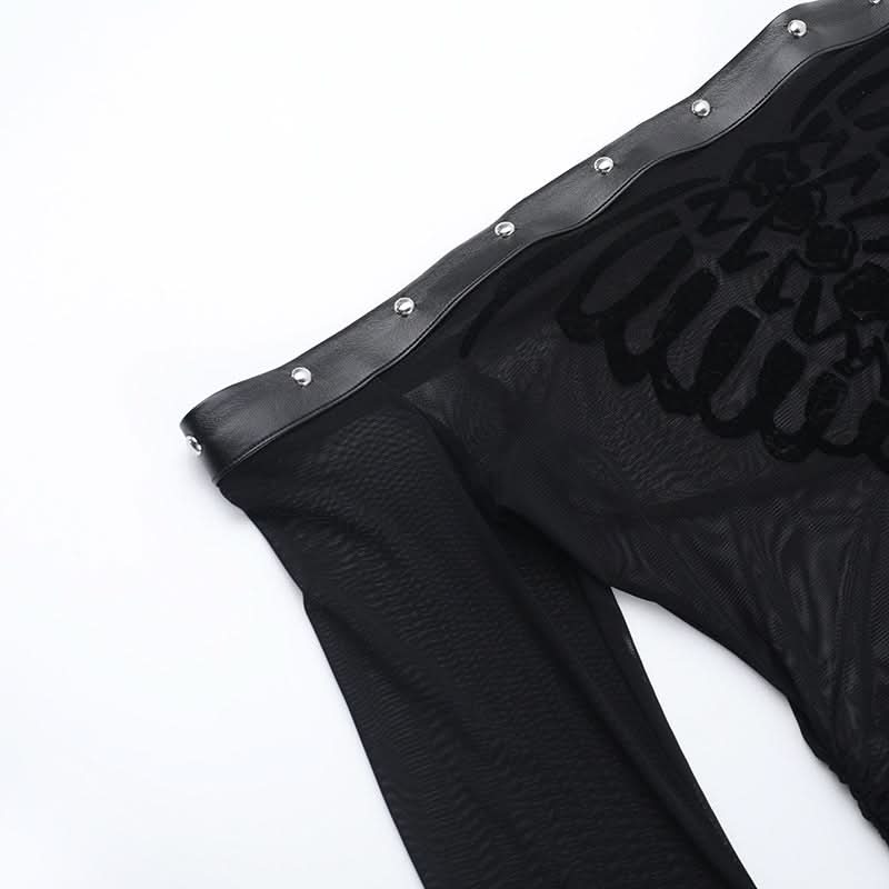 Long flared sleeve off shoulder mesh drawstring top