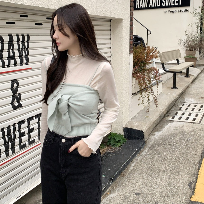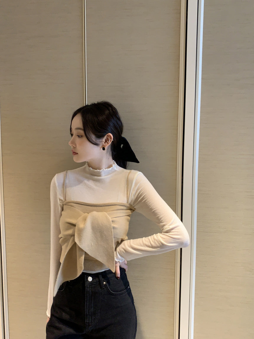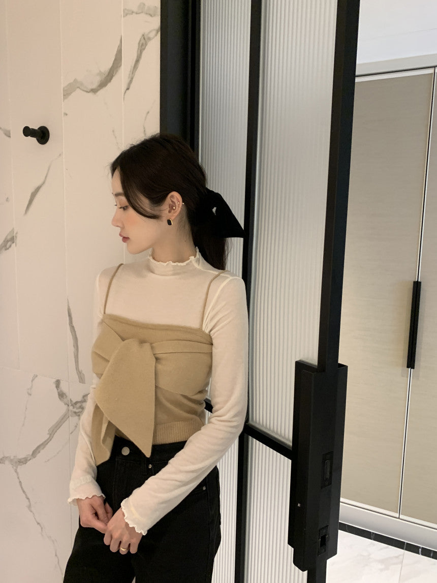 Long sleeve bottoming shirt and kitted sling two-piece set