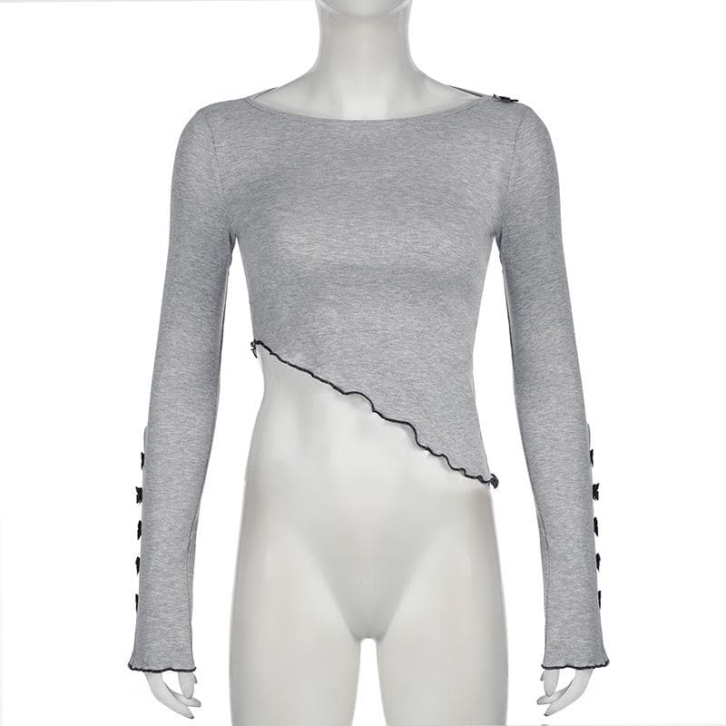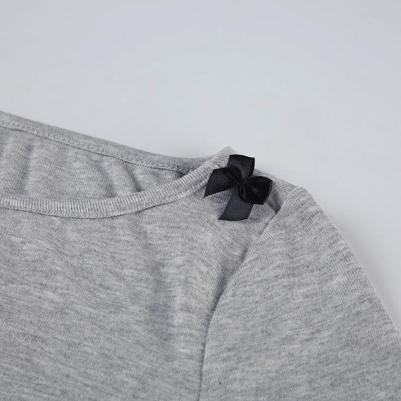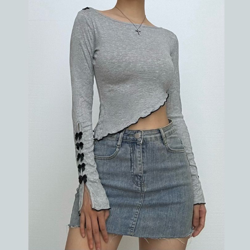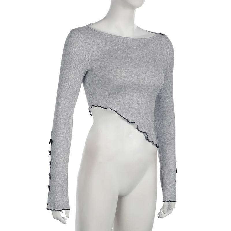 Long sleeve bowknot ruffle crop top