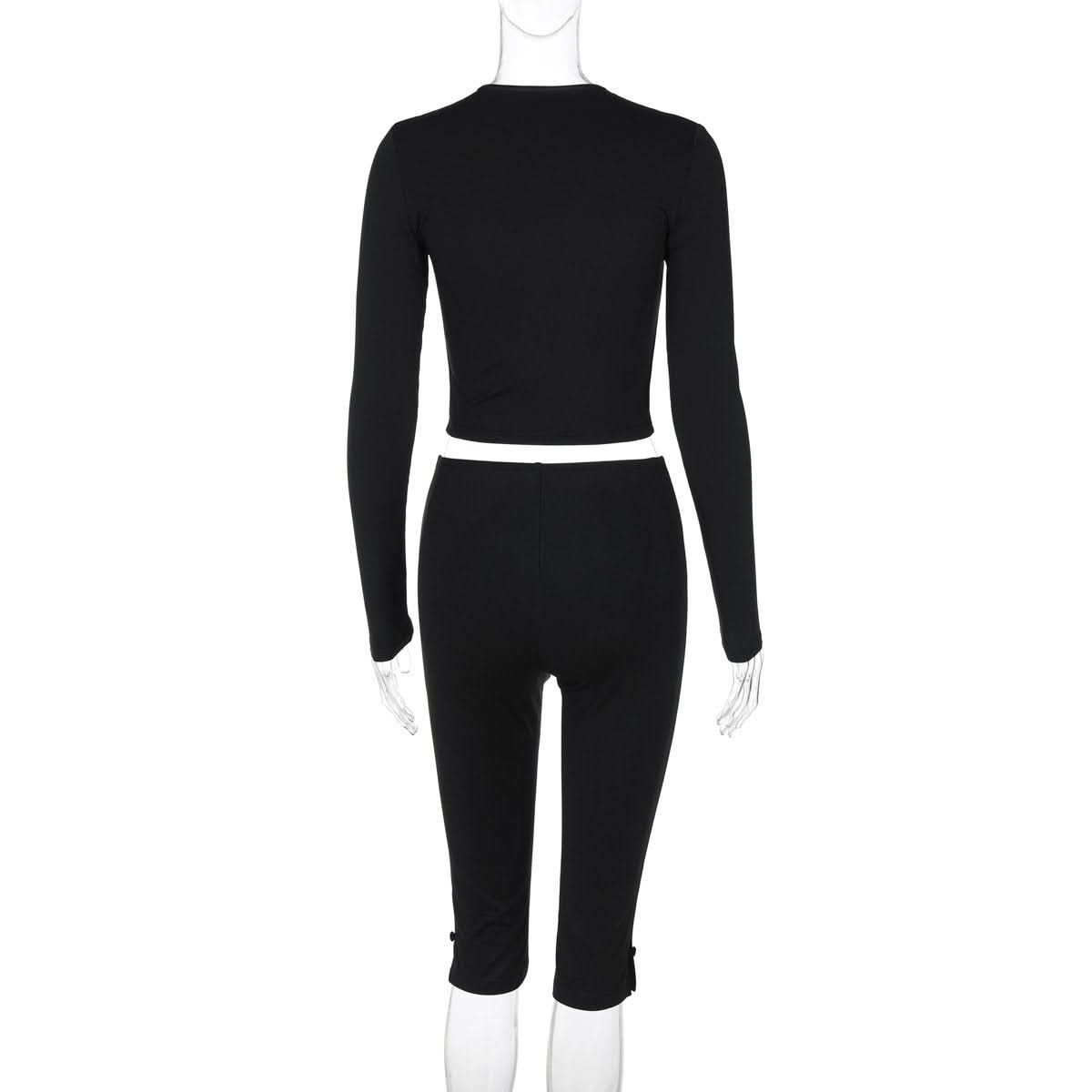 Long sleeve hollow out bowknot pant set