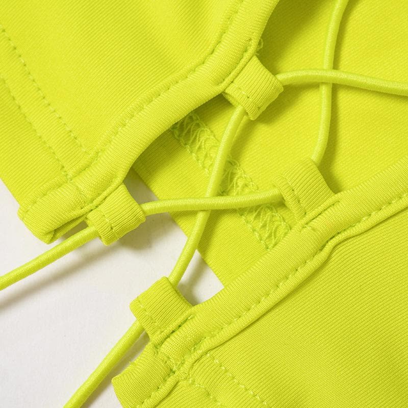 Long sleeve hollow out lace up mesh mini skirt set
