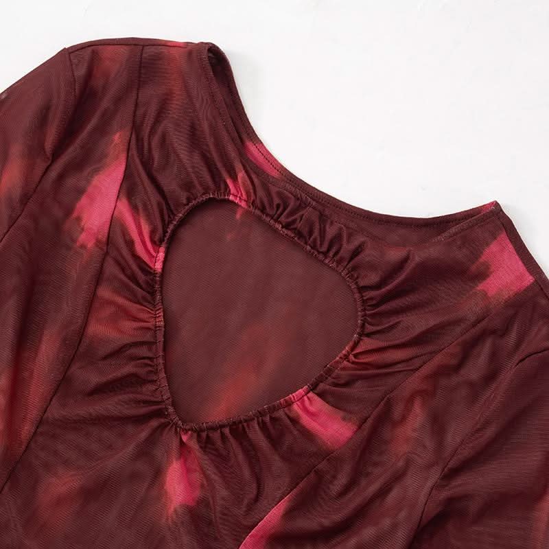 Long sleeve hollow out mesh ruched slit maxi skirt set