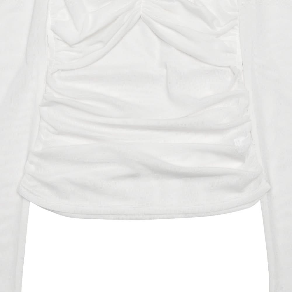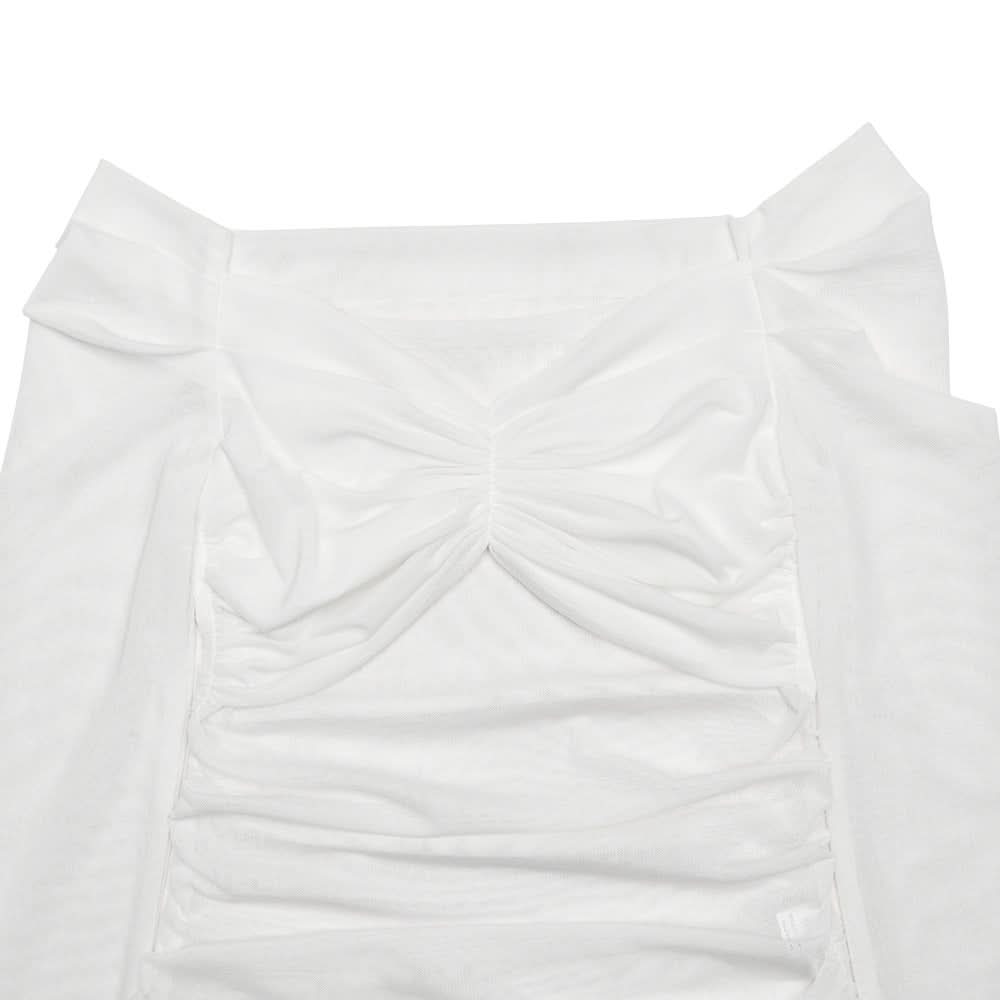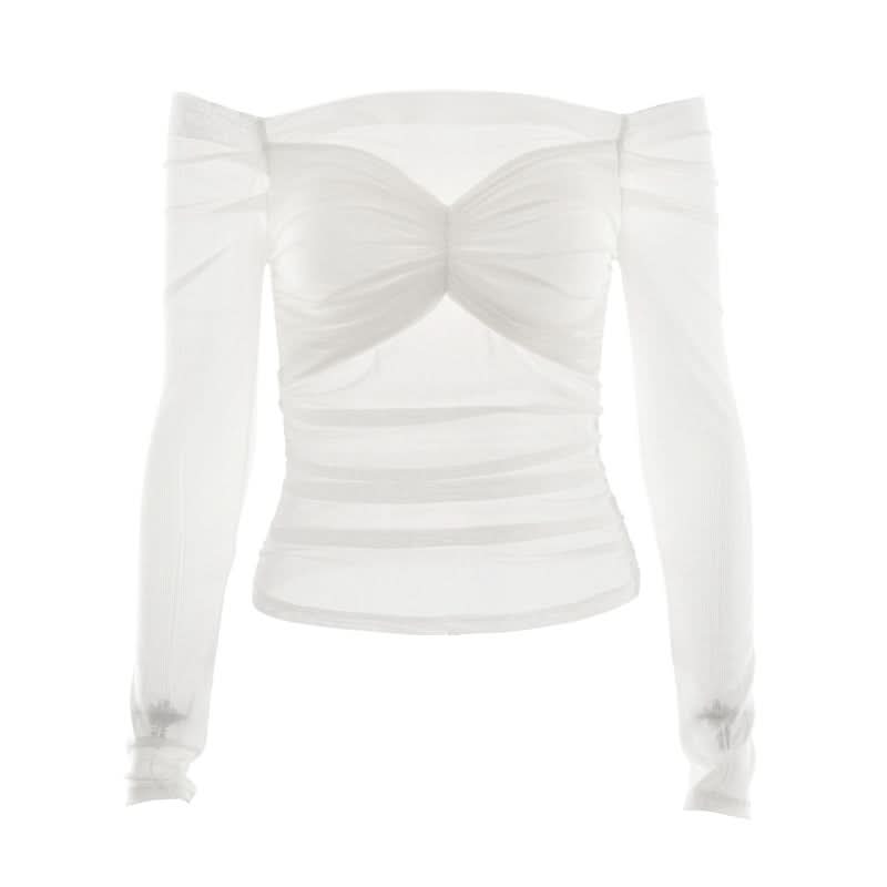 Long sleeve off shoulder mesh patchwork ruched mesh top