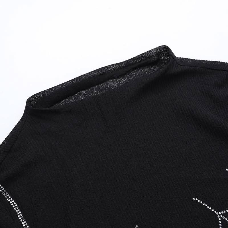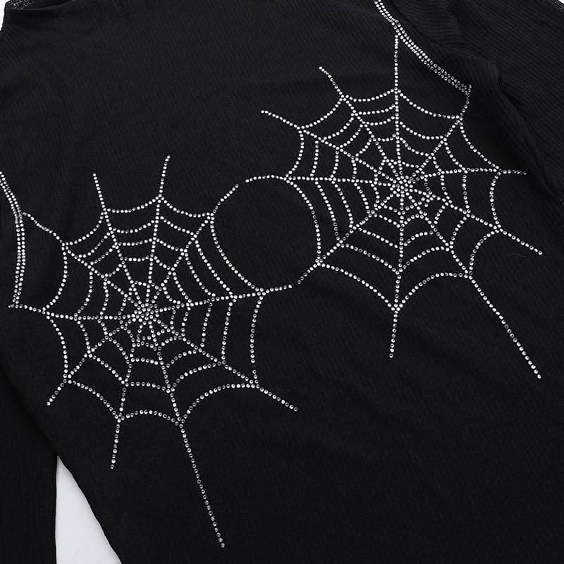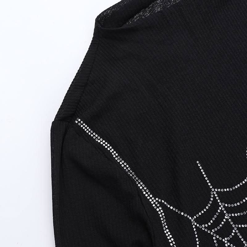 Long sleeve spider web beaded top