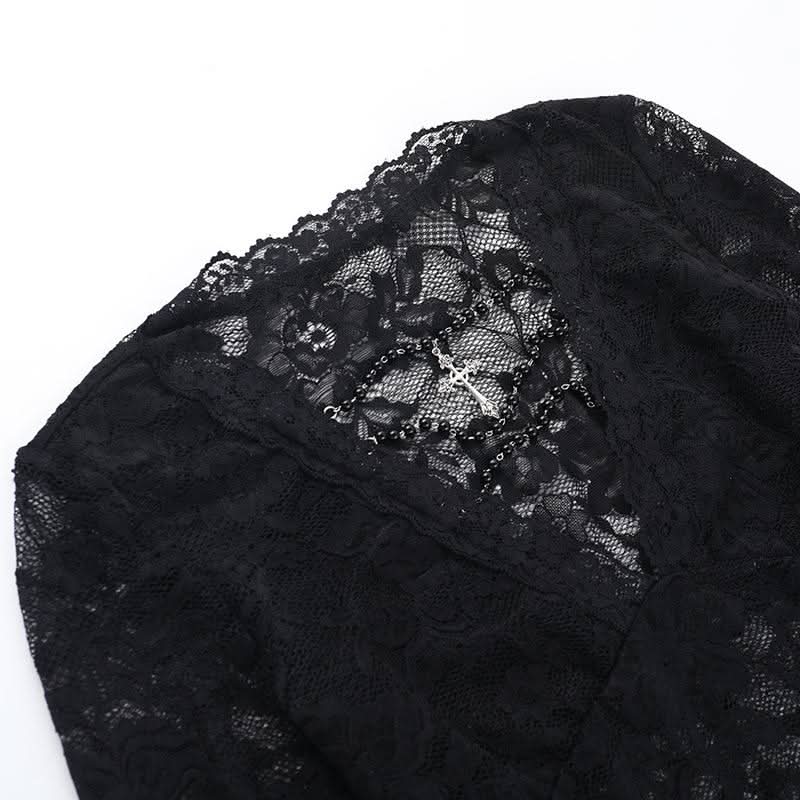 Long sleeve v neck lace top