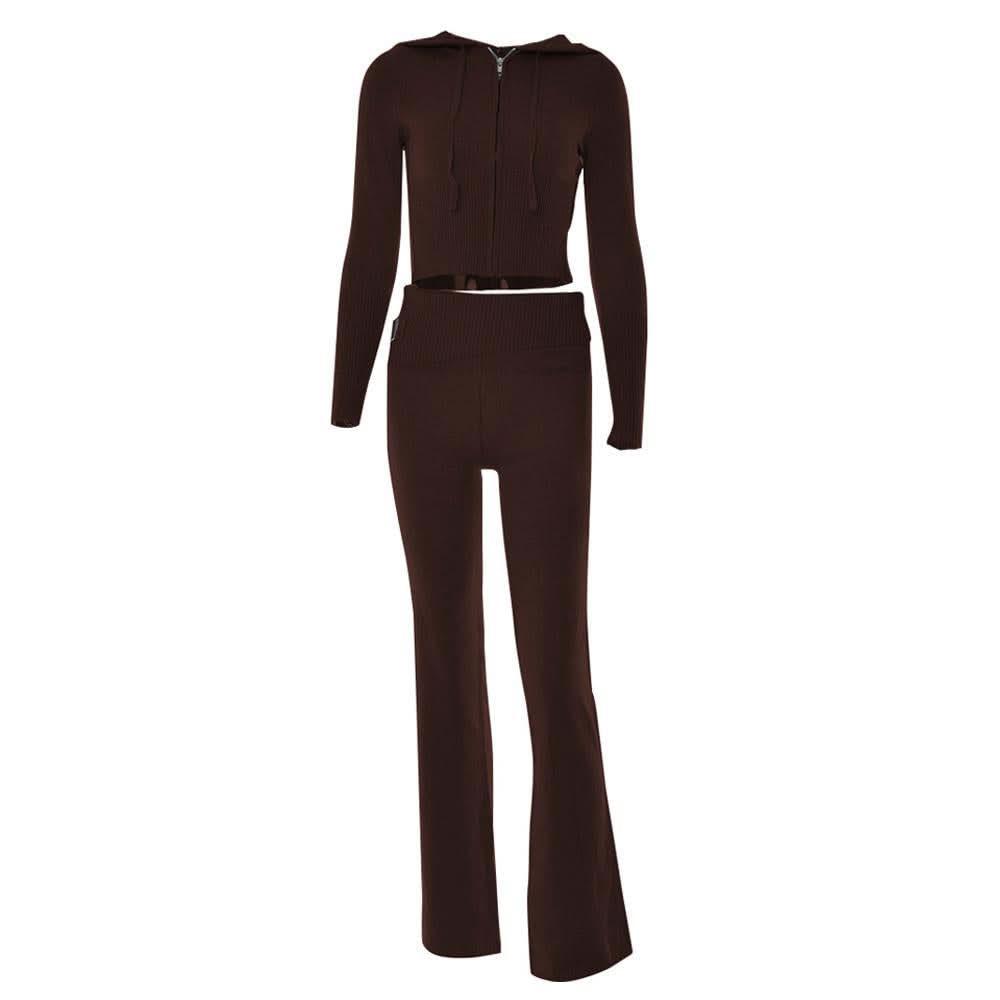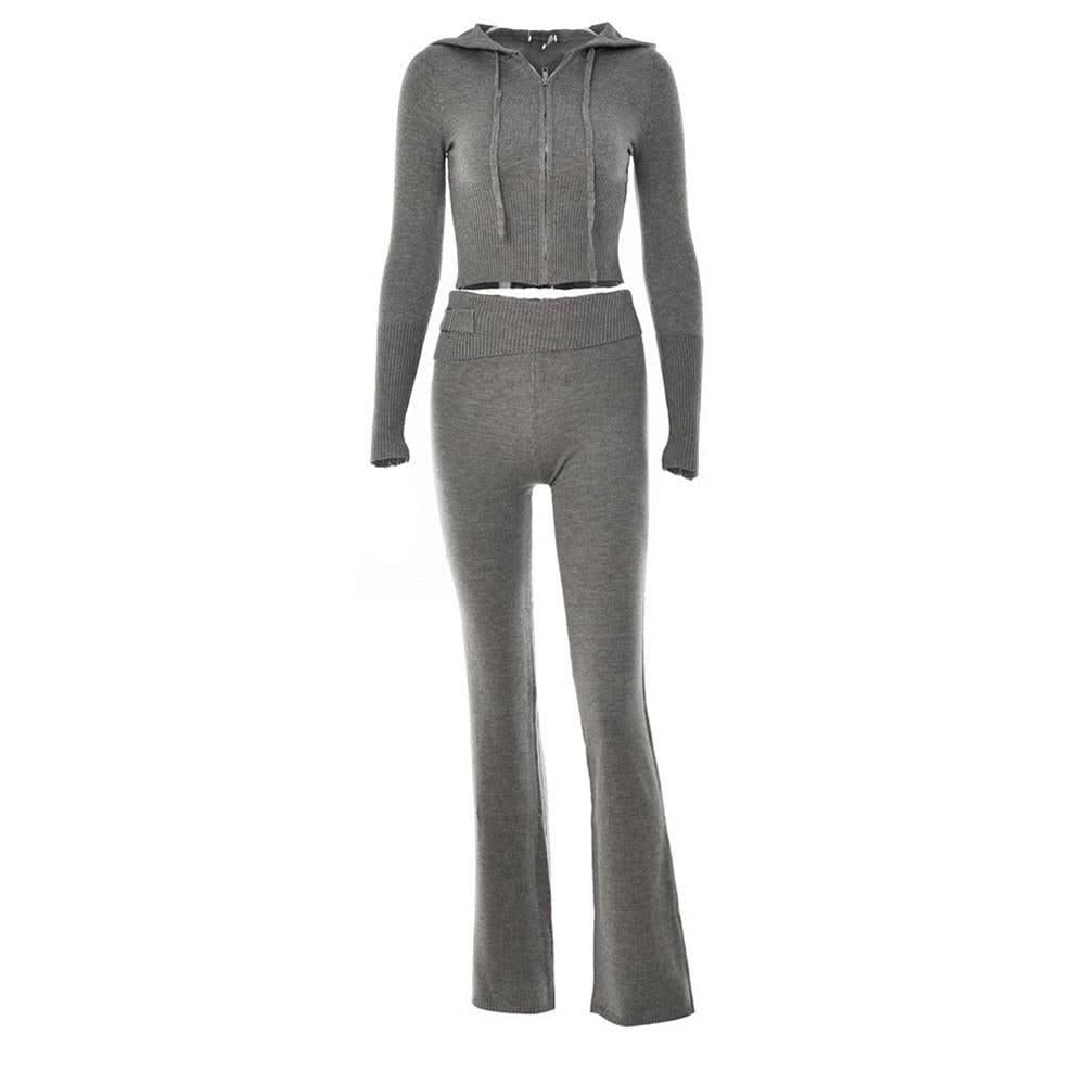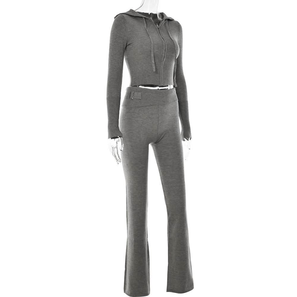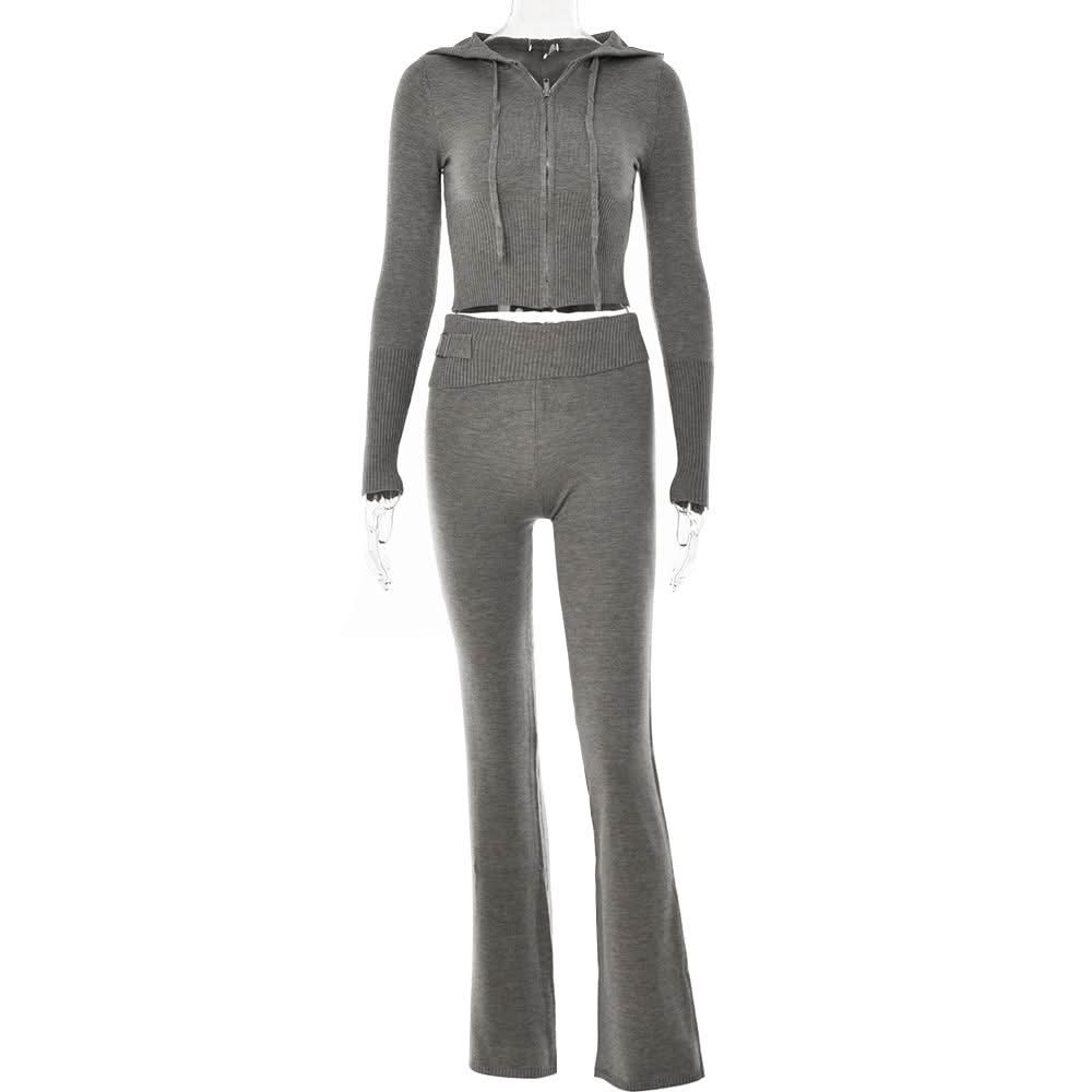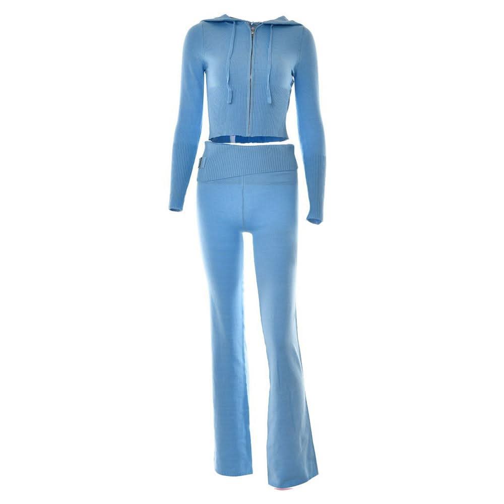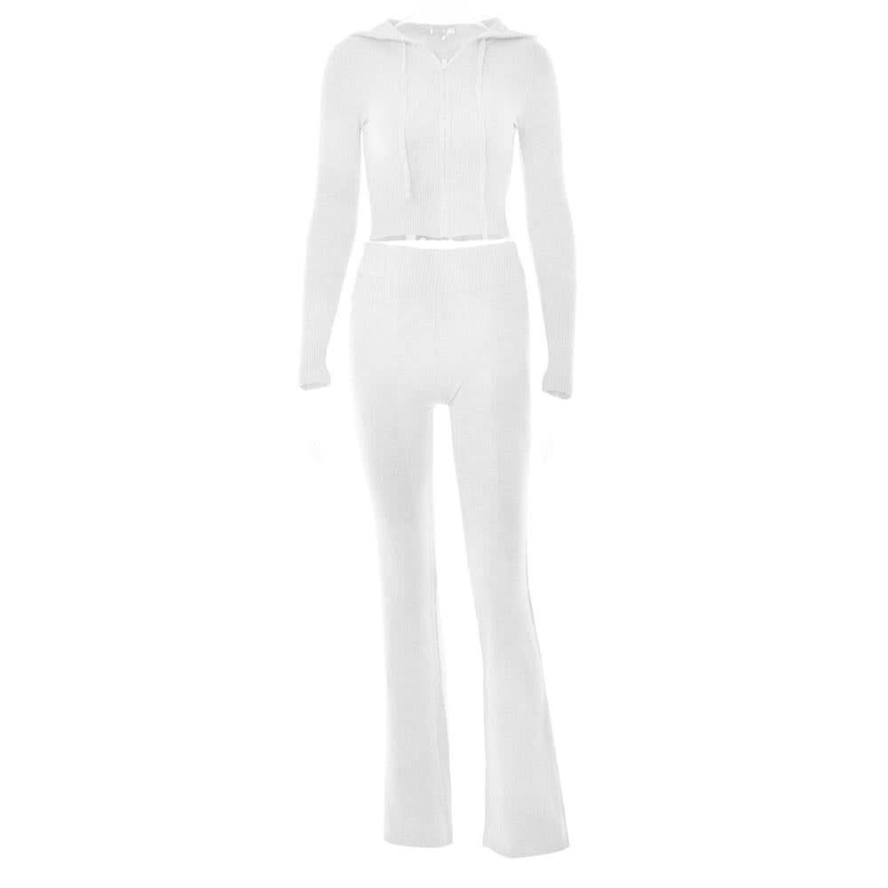 Long sleeve zip-up hoodie drawstring solid pant set