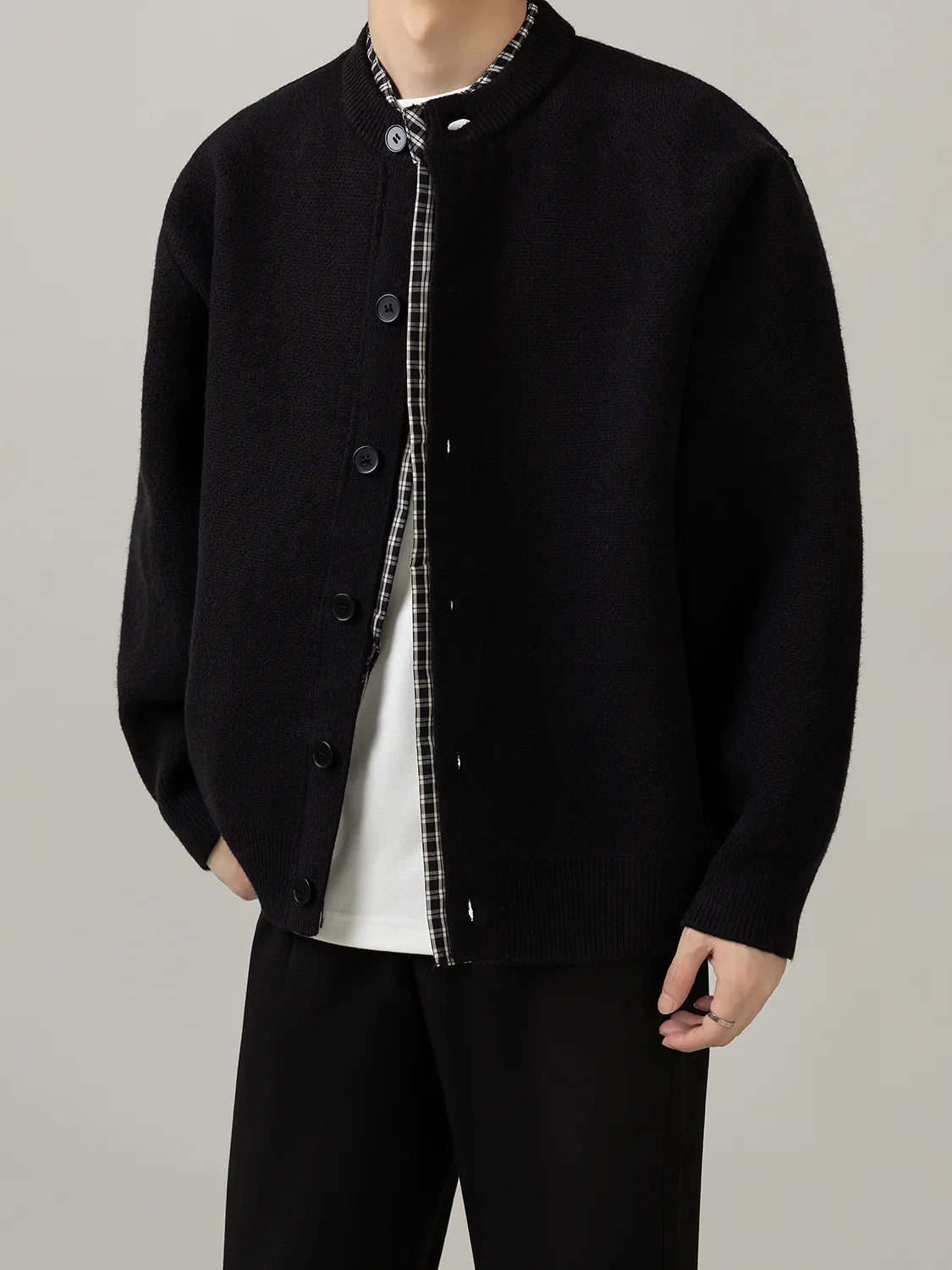 stitched knit cardigan