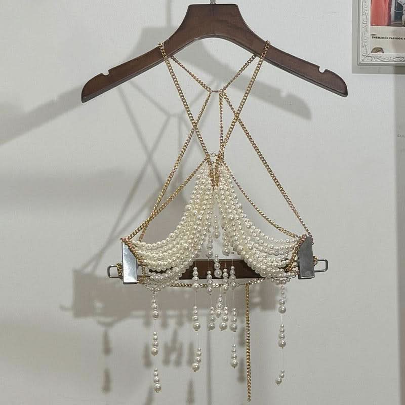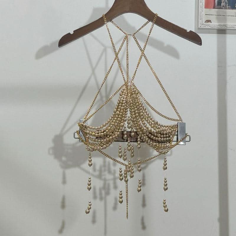 Metal chain beaded hollow out backless cut out top
