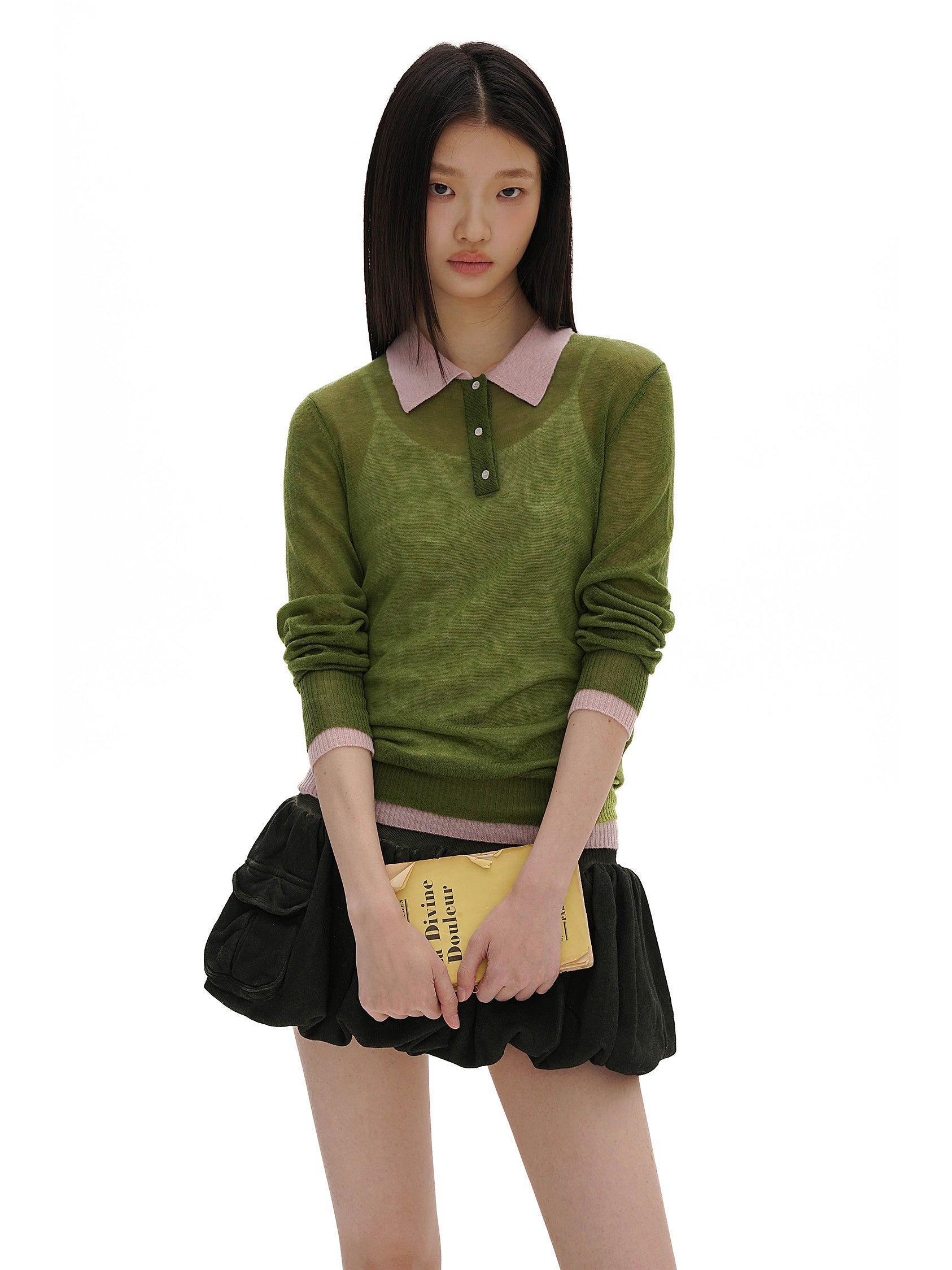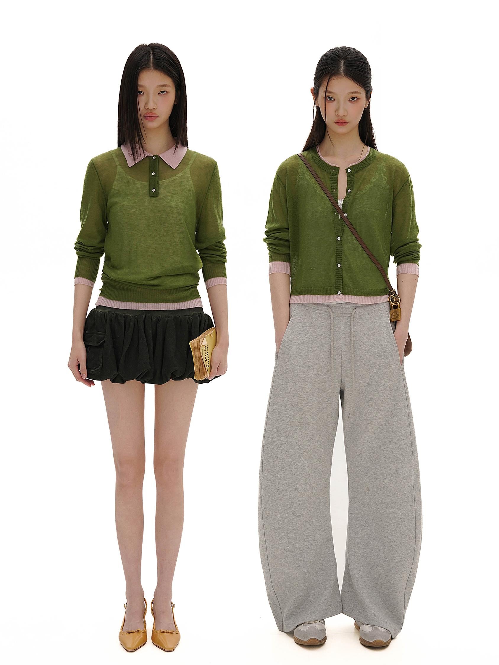 [MOROMORO] contrast knit cardigan