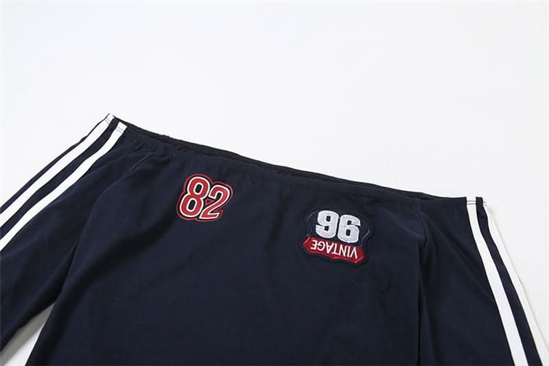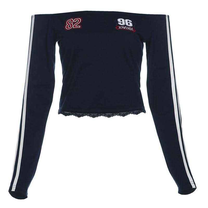 Off shoulder long sleeve lace hem embroidery top