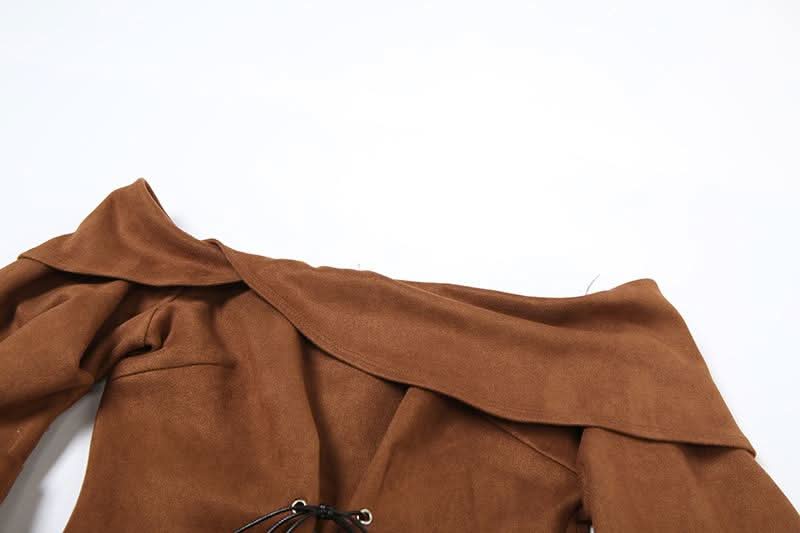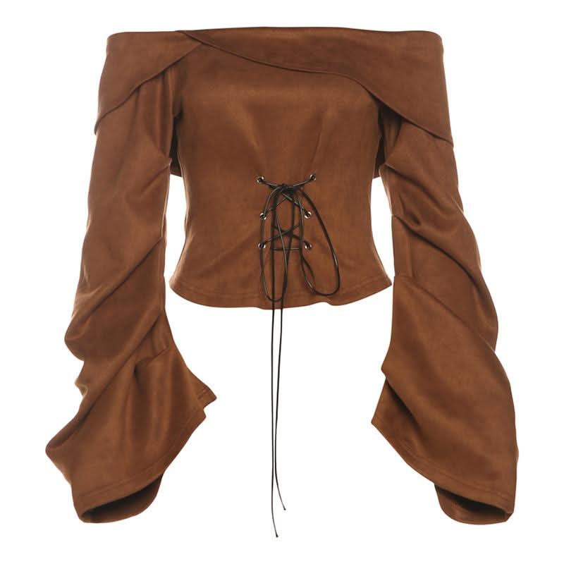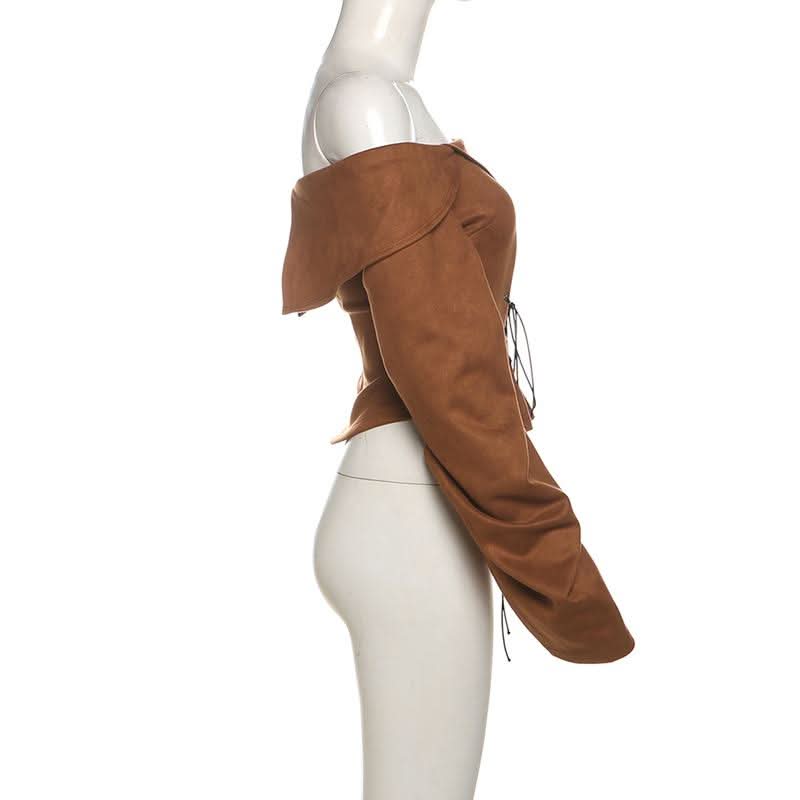 Off shoulder long sleeve lace up zip-up top