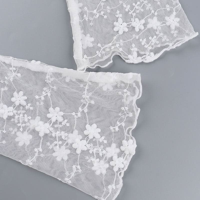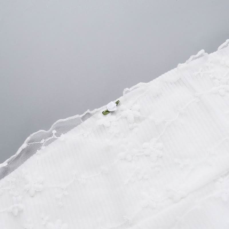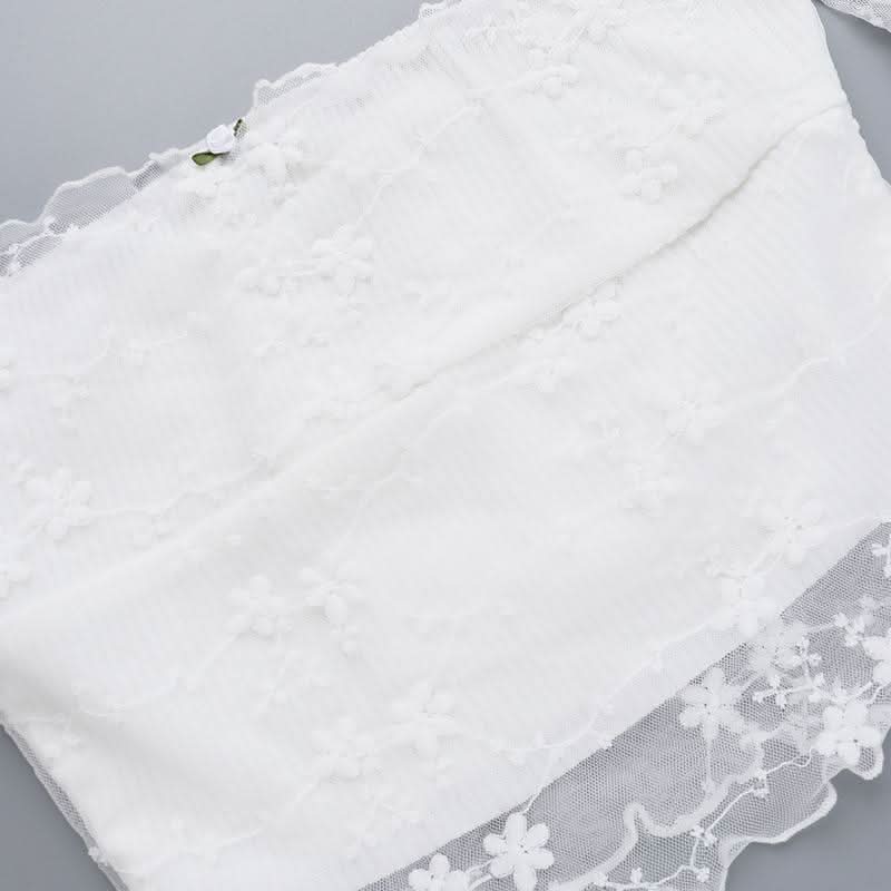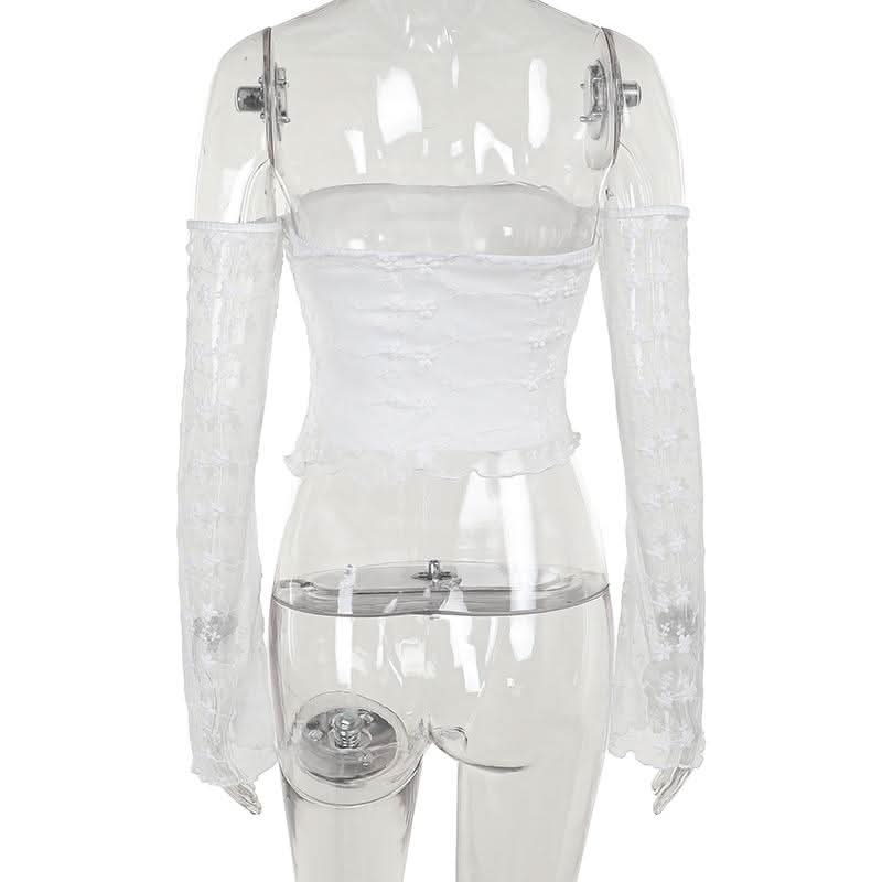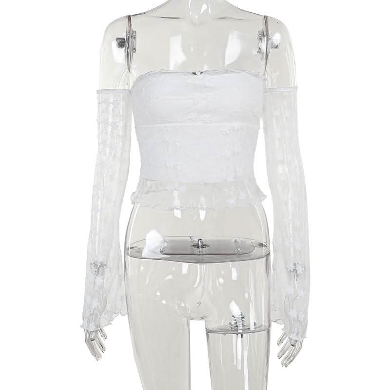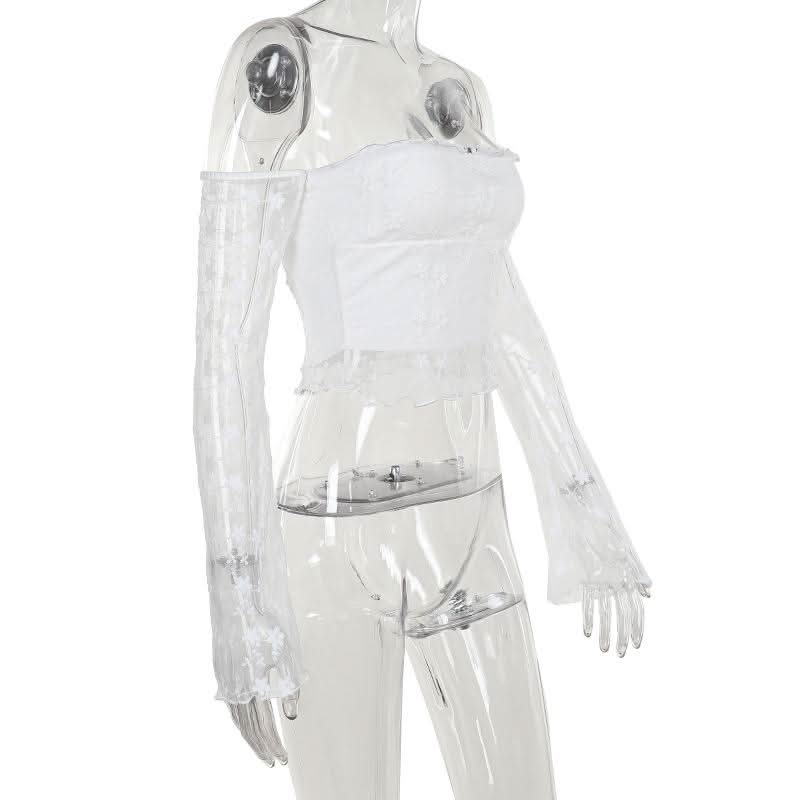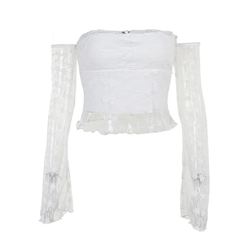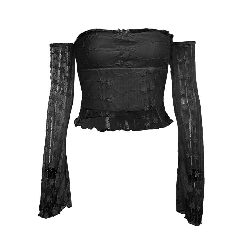 Off shoulder long sleeve mesh embroidery top