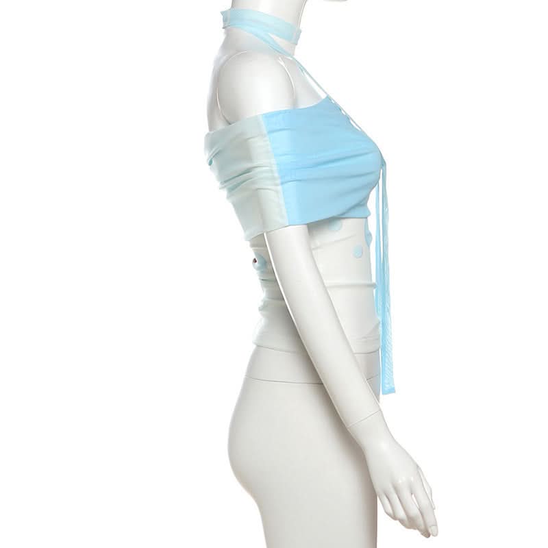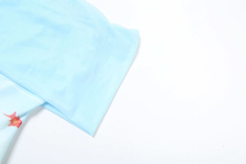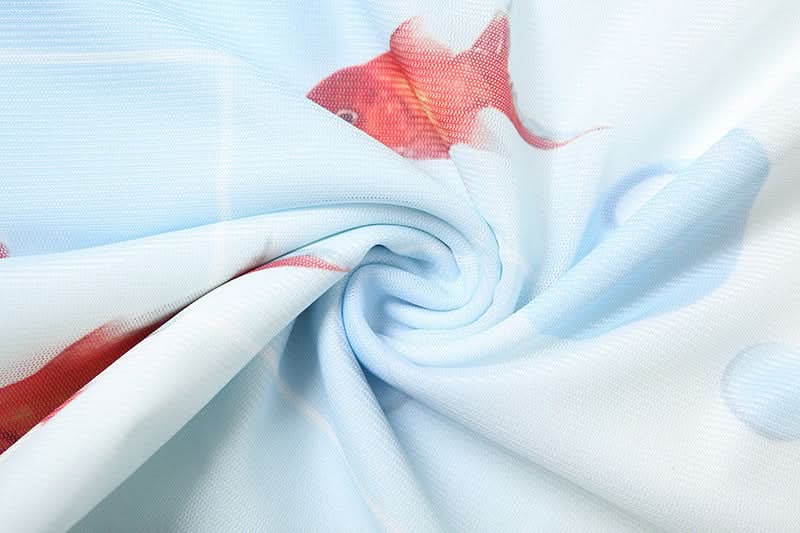 Off shoulder mesh fish print top