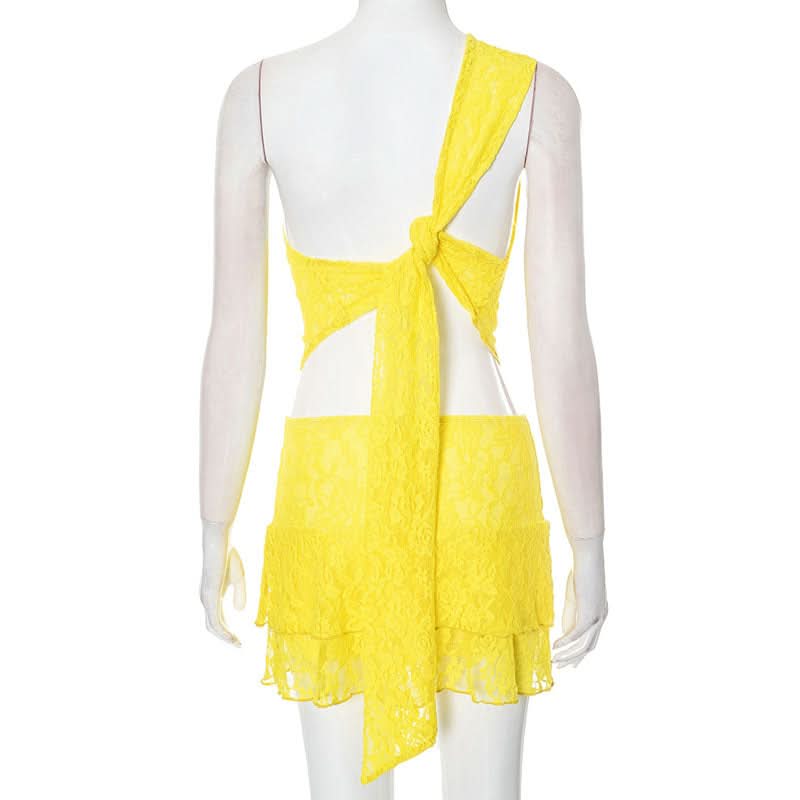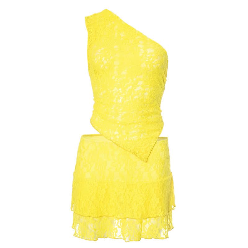 One shoulder lace irregular solid skirt set