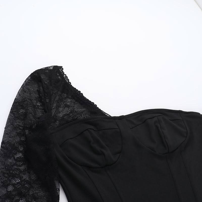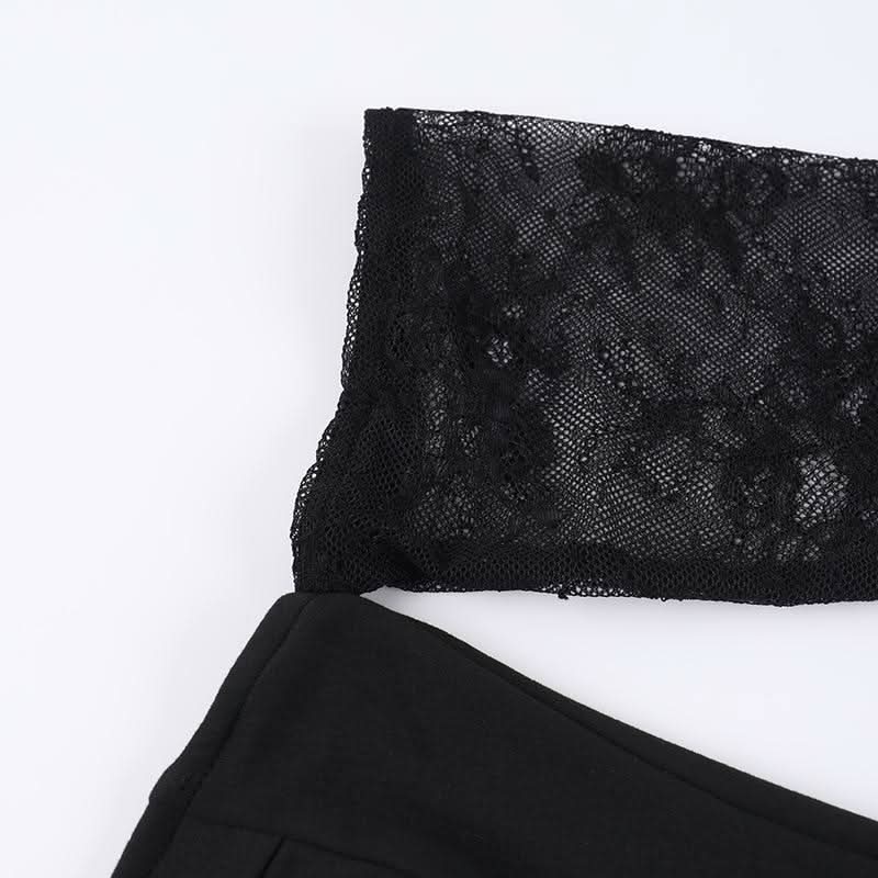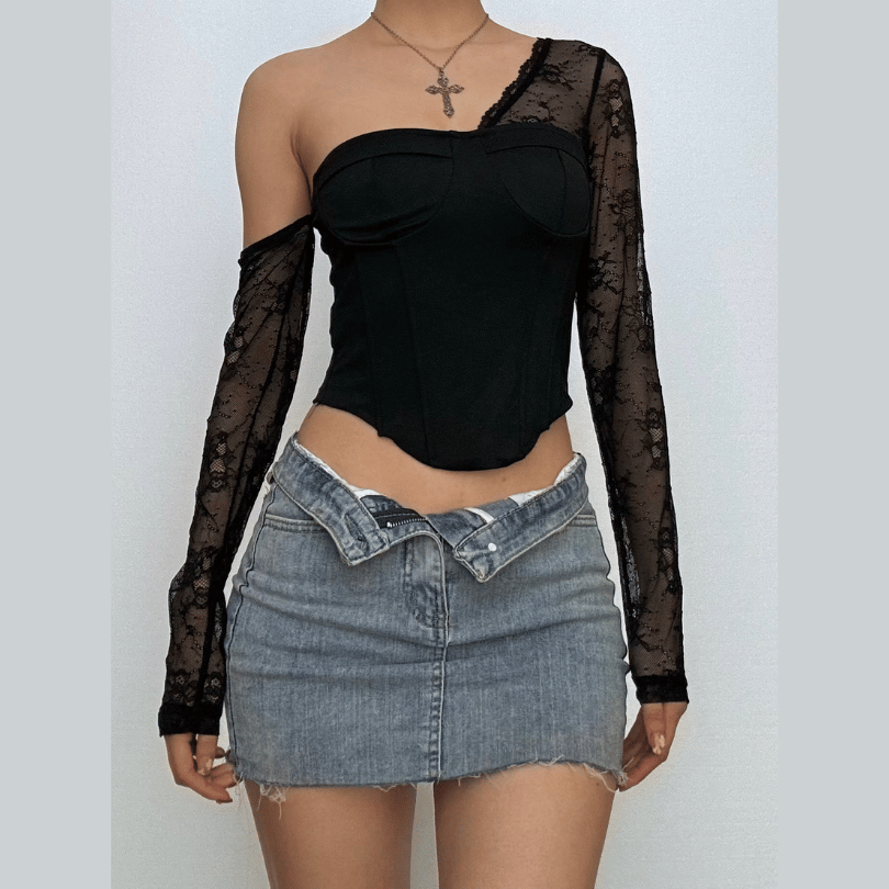 One shoulder long sleeve patchwork lace top