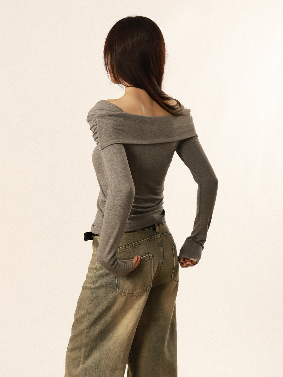 One shoulder long sleeve slim top