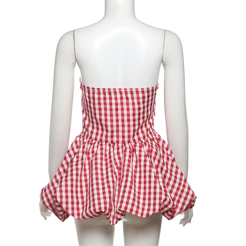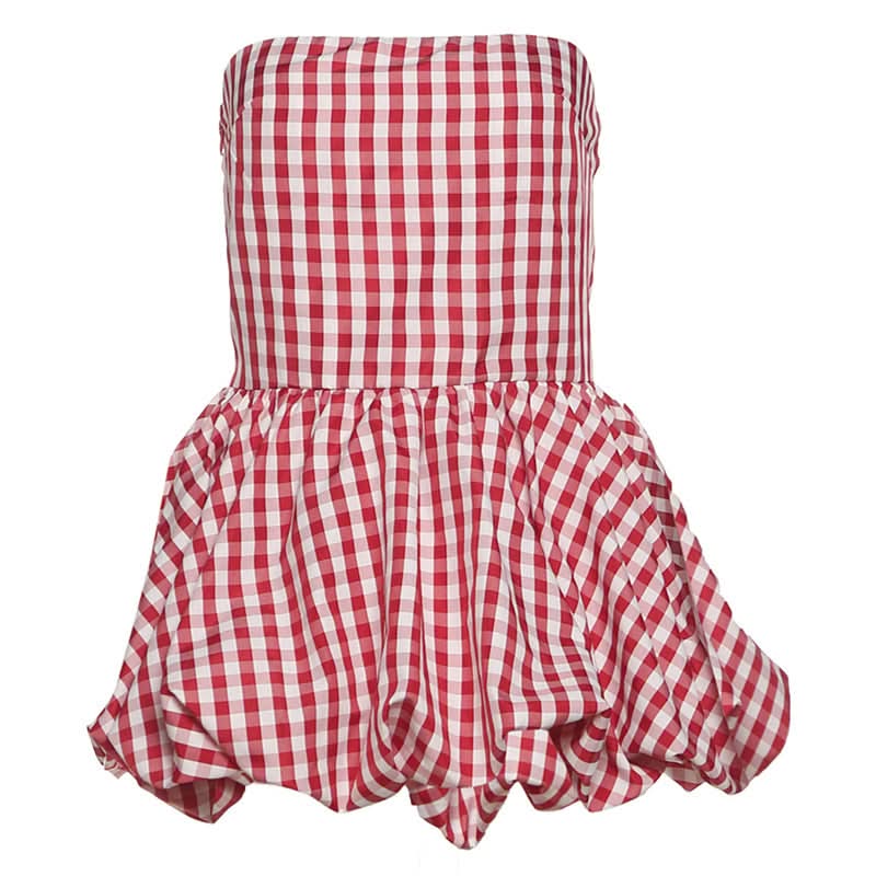Plaid zip-up ruched contrast tube top