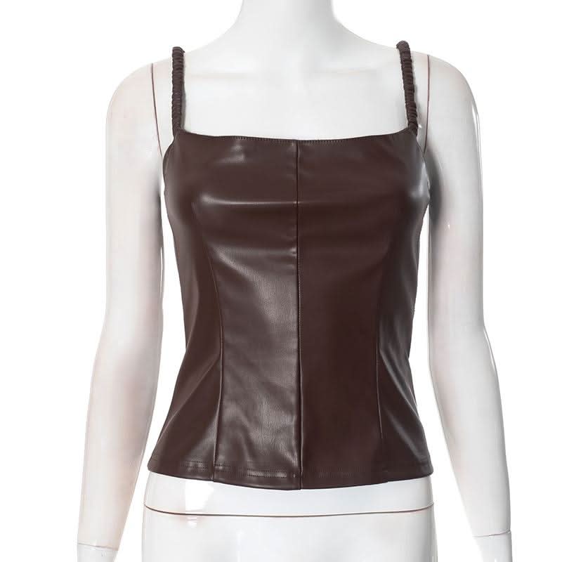 PU leather backless cami top