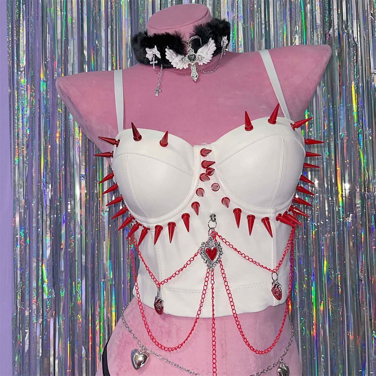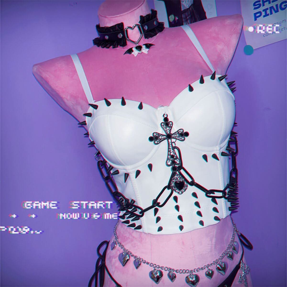 PU leather bustier rivet metal chain cami top