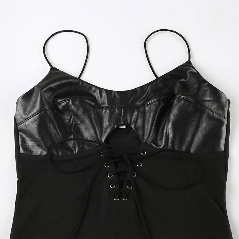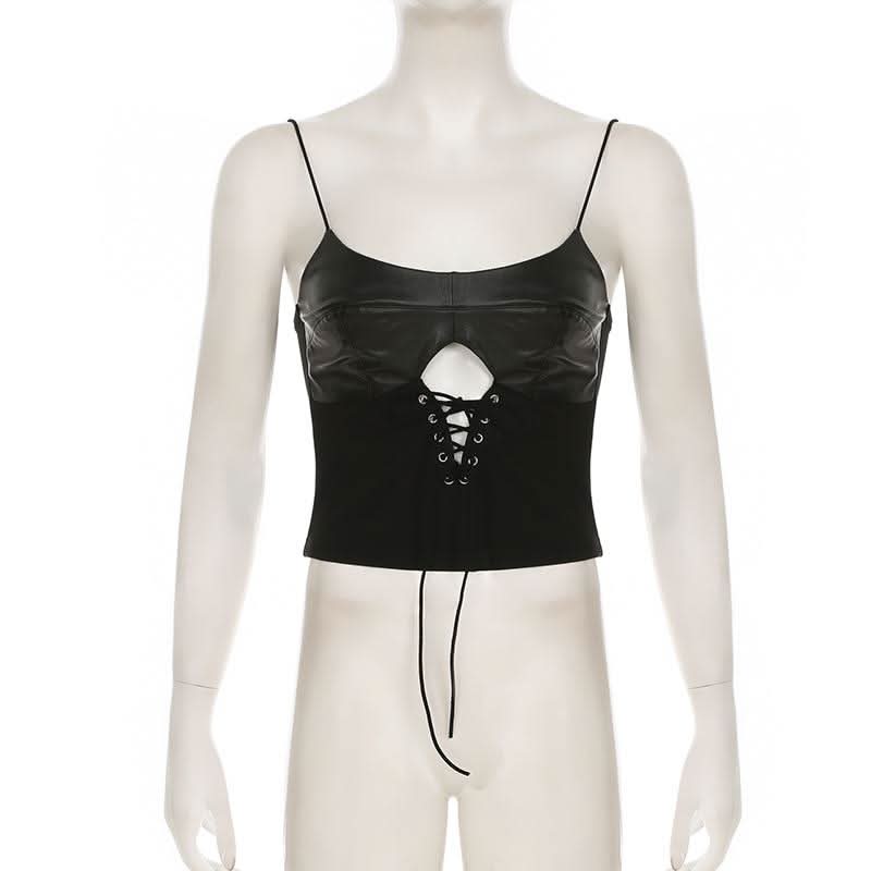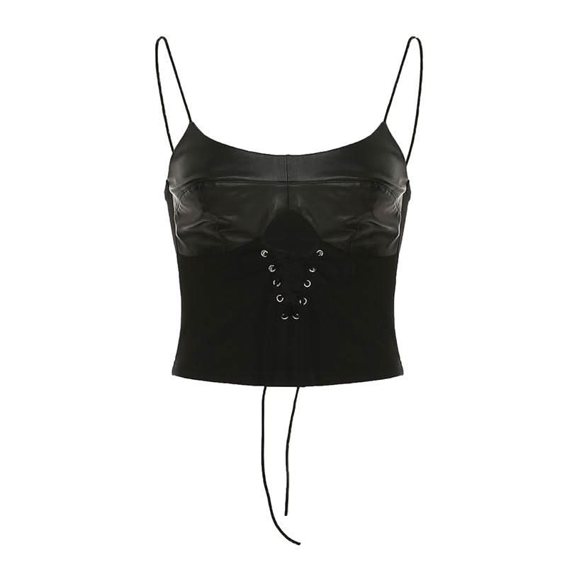 PU leather patchwork lace up cami top