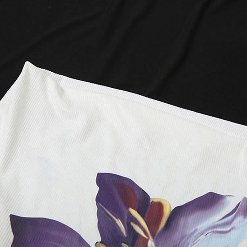 Ribbed long sleeve irregular flower pattern top