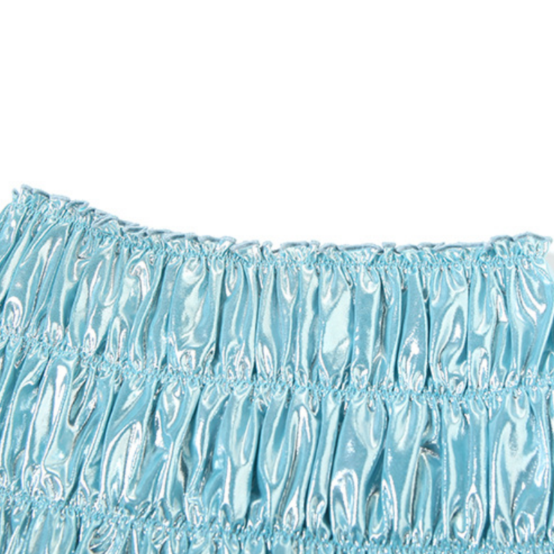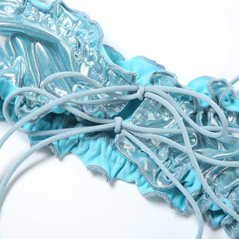 Ruched metallic ruffle self tie 3 piece mini skirt set