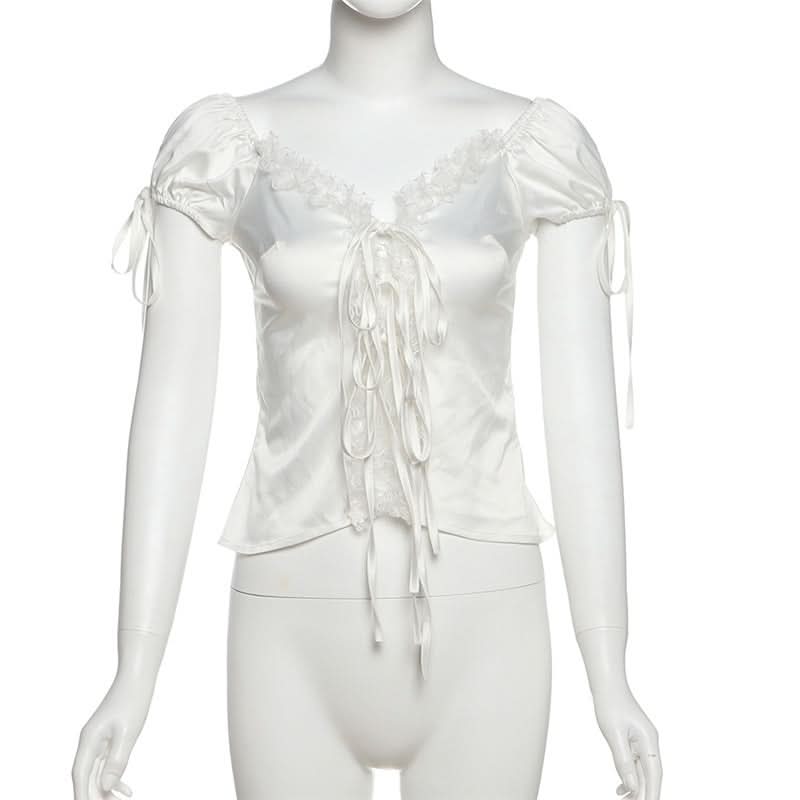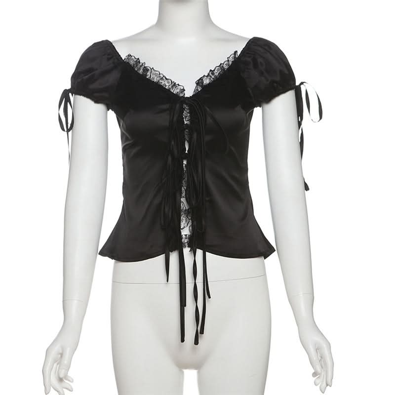 Self tie lace hem ruched top