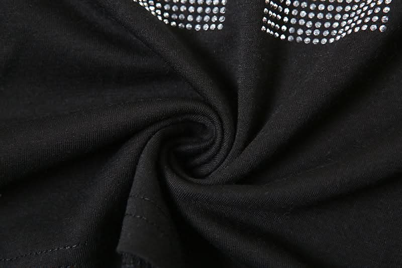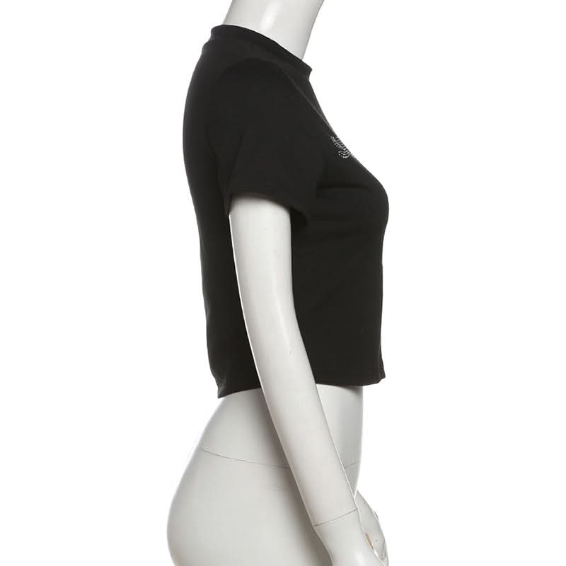 Short sleeve letter beaded crewneck top