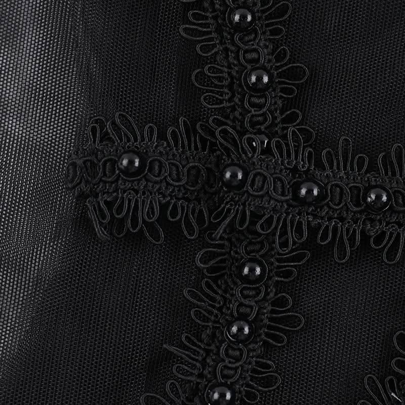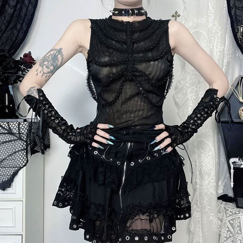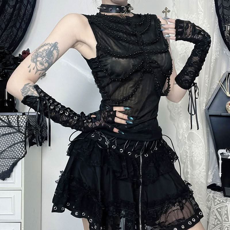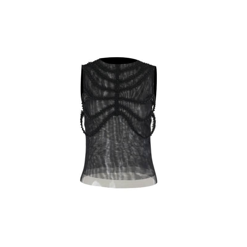 Sleeveless crewneck mesh beaded top