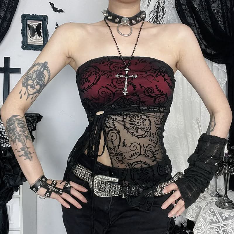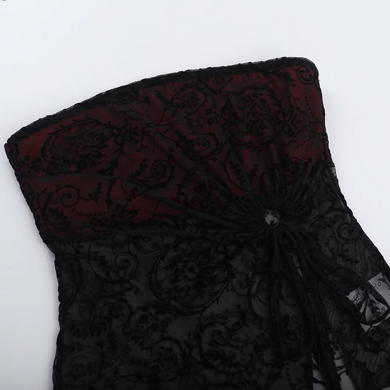 Slit irregular print ruched self tie tube top