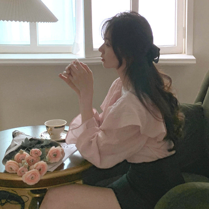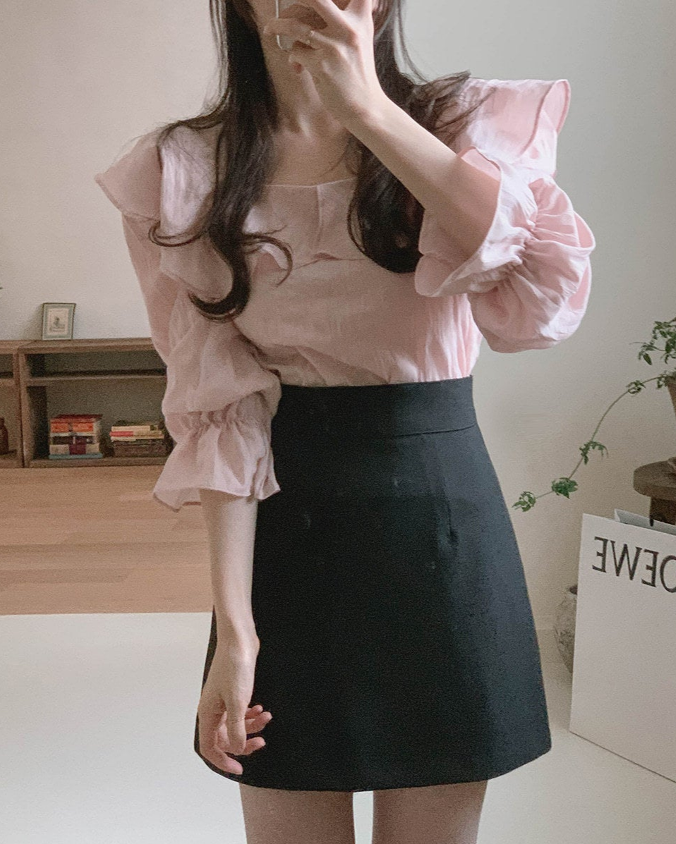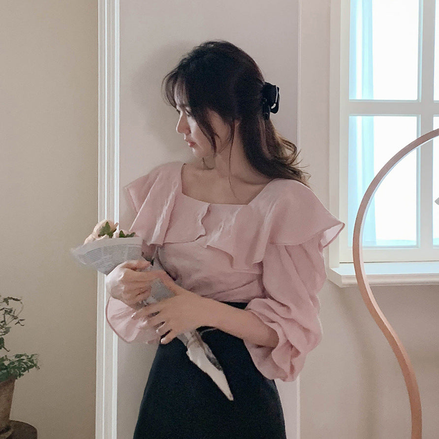 Square collar ruffled top