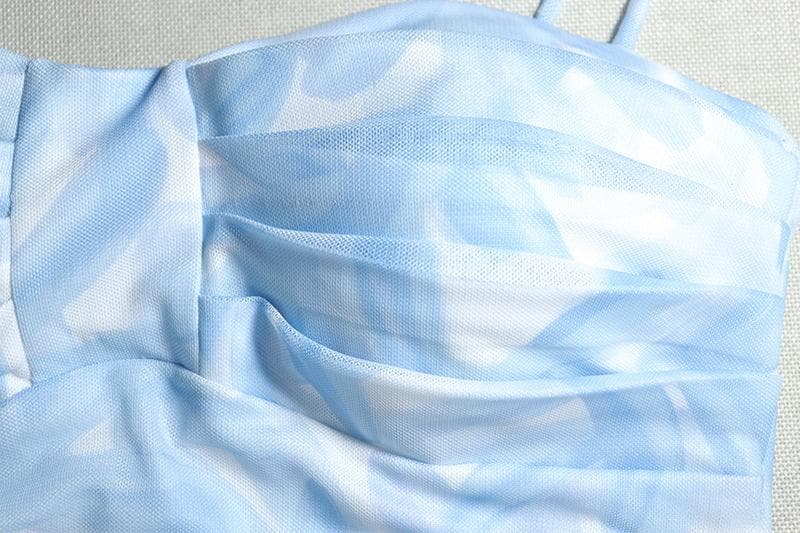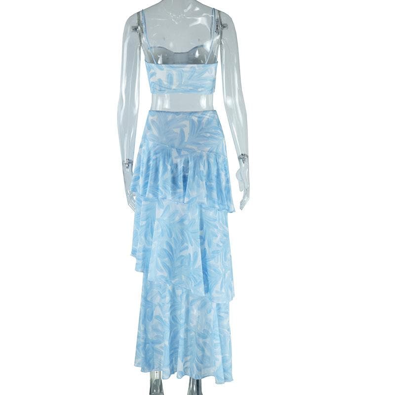 Sweetheart neck ruffle mesh cami maxi skirt set