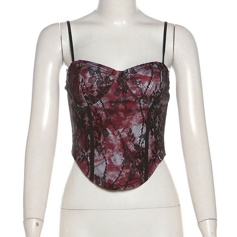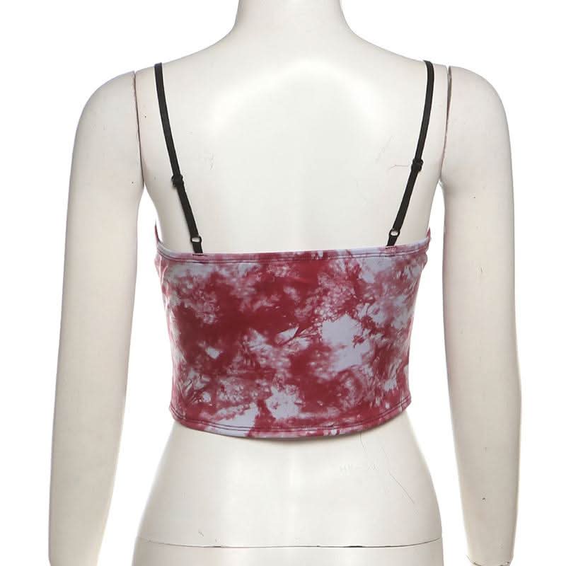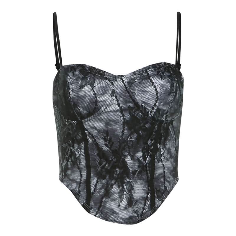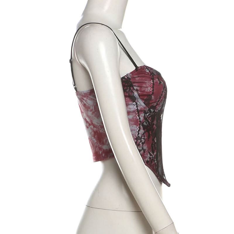 Sweetheart neck tie dye lace cami top