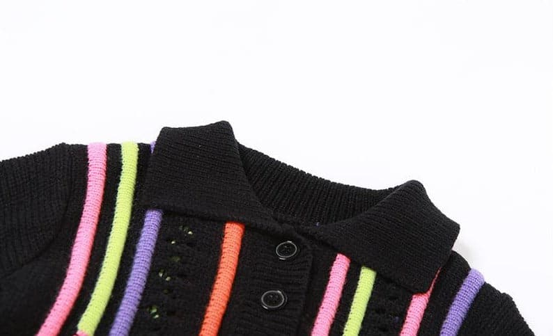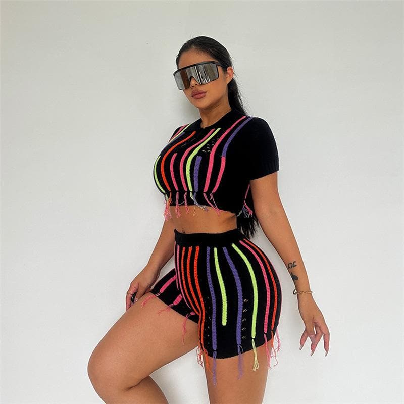 Tassels short sleeve contrast turnover collar button pant set