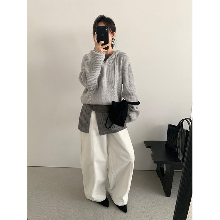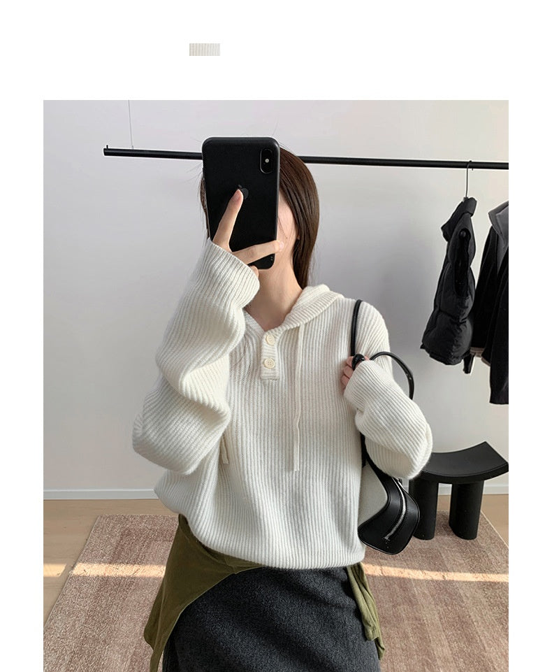 knit pullover hoodie